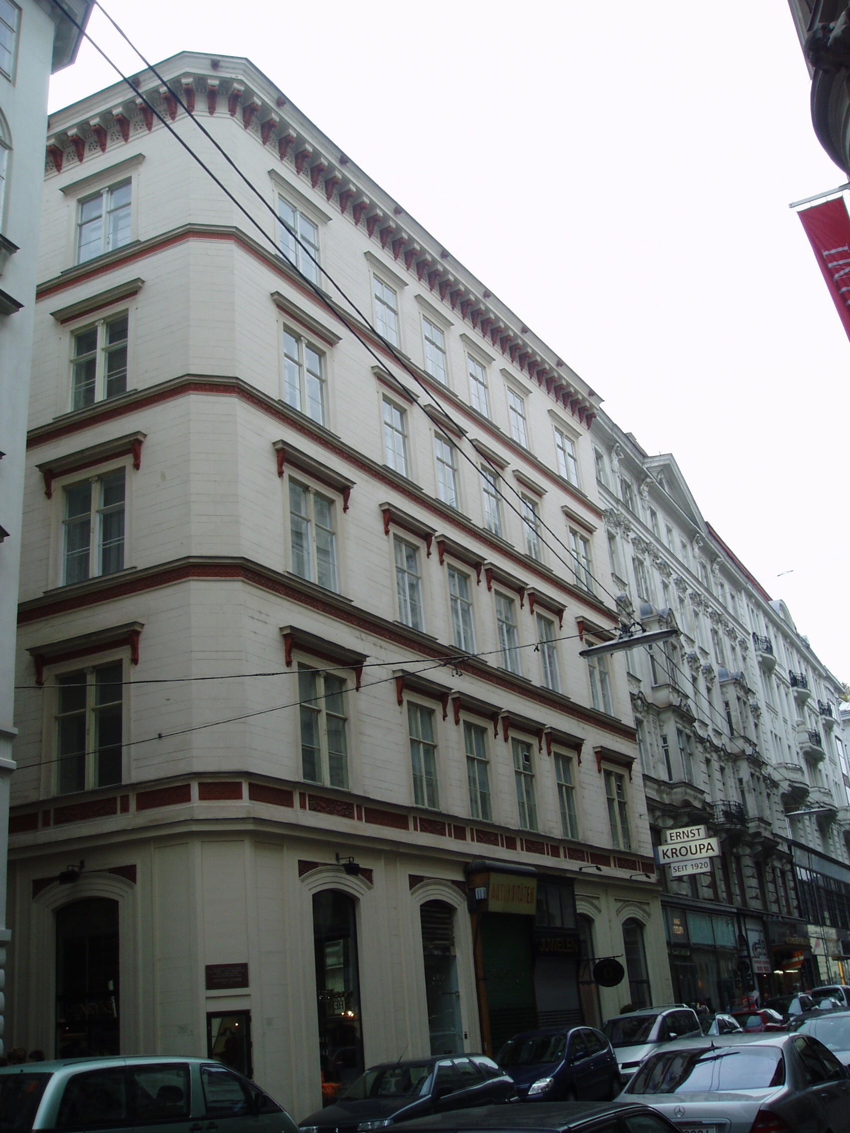 Nyilvános 1235 | 2094 | Spiegelgasse 7 (Gottweihergasse sarok) | 1774-től haláláig a mostani ház helyén korábban állott épületben lakott Antonio Salieri zeneszerző, II. József, majd II. Lipót udvari karmestere. Zenetörténeti hírnevét leginkább annak az alaptalan gyanúsításnak köszönheti, miszerint szakmai féltékenységből ő mérgezte volna meg Mozartot. A történetet először Puskin, majd Peter Shaffer írta meg. Peter Shaffer drámájából készült Milos Forman híres "Amadeus"-filmje. 1822/23-ban Salieri volt a csodagyermek Liszt zeneelmélet-tanára, a kisfiú bizonyára ide járt el hozzá zeneórákra. |