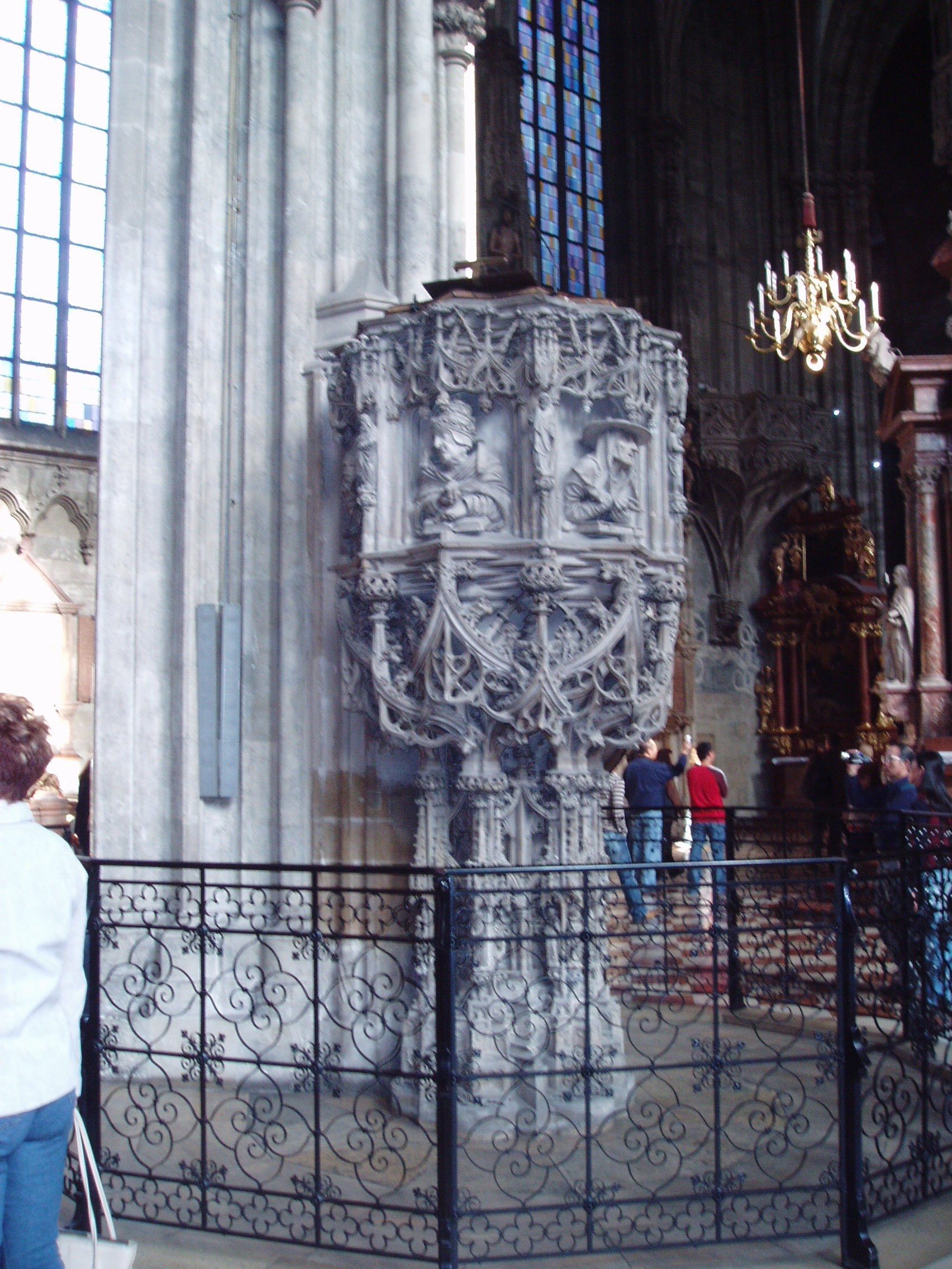 Gótikus szószék a Stephansdomban.