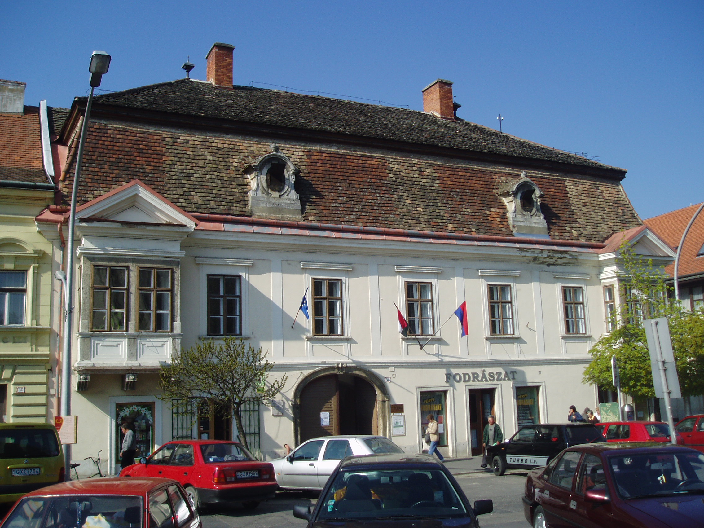 Nyilvános 1229 | 3033 | Pápa, Fő tér 21. Zichy-ház | A Zichy-ház a Fő tér és a Korvin utca sarkán áll. Elnevezése máig nem tisztázott. 1760 körül épült, s a helyi késő barokk stílus egyik legértékesebb alkotása. Egy ideig a Pápai Kaszinó otthona volt, majd gróf Esterházy Tamás uradalmi háza lett. Előkelő tömegű, de egyszerű architektikájú épület, amelyet zárterkélyek élénkítenek. Hatalmas manzardteteje szinte "megüli" a házat. Kőkeretezésű, kosáríves, záróköves kapuja hangulatos, festői belső udvarba vezet. A több szakaszos kapualjat lapos boltozat fedi. A lépcsőházba kosáríves, kőkeretes ajtó nyílik, díszes, kovácsoltvas rácsa a kovácsművesség remeke. Az épület a legkorábbi, szakszerű műemléki helyreállítások közé tartozik a városban. A fénykép 2007 áprilisában készült. Felh. irod.: Németh Adél - Szabó Lajos: Pápa. Bp. Panoráma, 1989 |