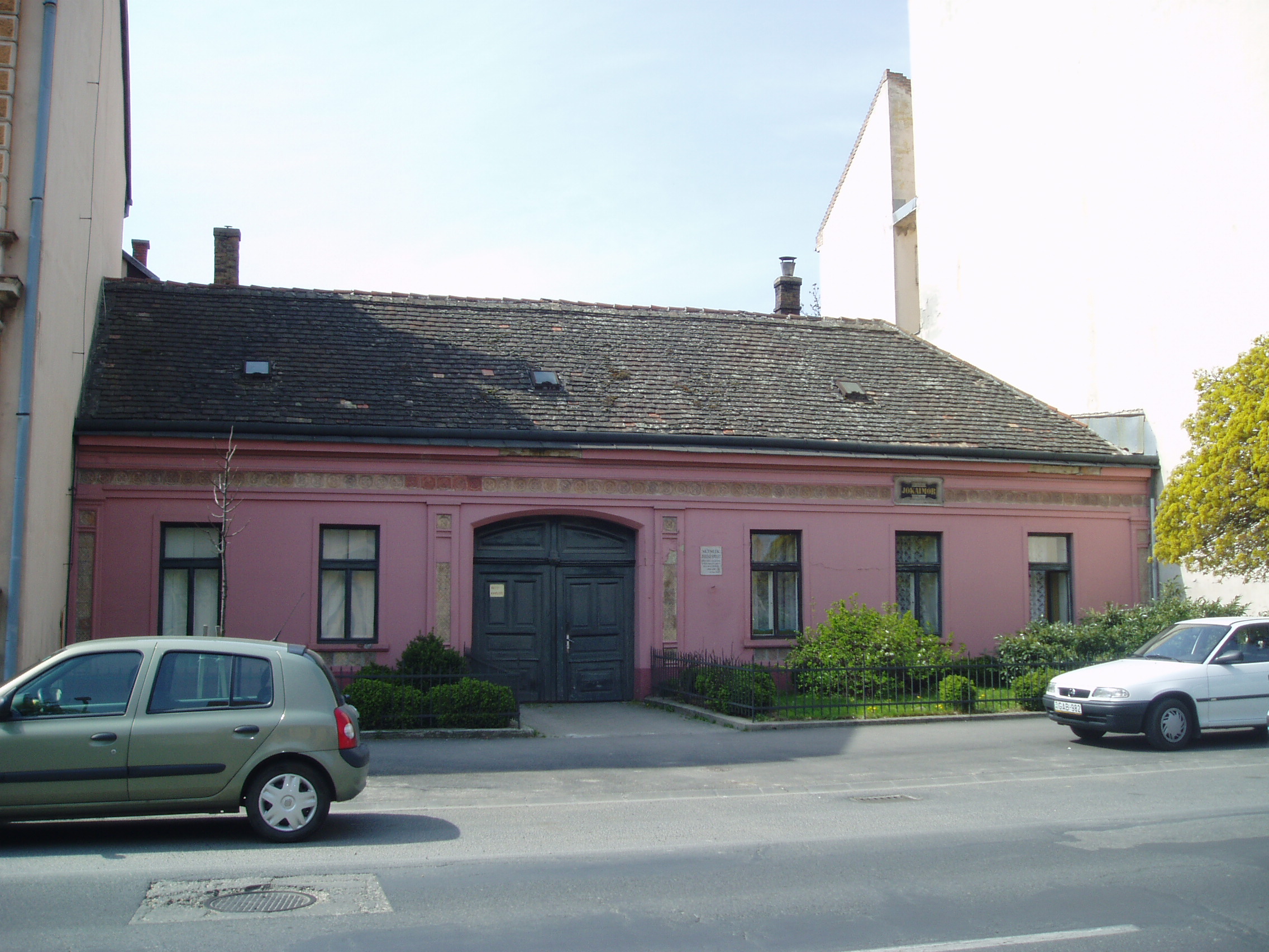 Nyilvános 1172 | 2134 | Pápa, Jókai utca 13. | Klasszicista stílusban, 1820 körül épült egyemeletes lakóház. Homlokzatán emléktábla jelzi, hogy pápai diák korában, 1841/42-ben itt lakott Jókai Mór. Jókai - akkor még Jókay - Mórt sógora, Vály Ferenc hozta Pápára 1841. aug. 21-én különbözeti vizsgát tenni, ami után a fiú a Kollégium (lásd: Pápa, Petőfi u. 13.) diákja lett. Nov. 1-jén költözött be bebbe a házba, Klára Mihály otthonába, kosztosdiákként. (Még idős kori levelében is emlegette a "derék" Klára Mariska főztjét.) Együtt lakott Kerkapoly Károly későbbi filozófiaprofesszorrel és pénzügyminiszterrel és egy Pap Dénes nevű iskolatársával. Az itt töltött időben Jókai jeles előmenetelű diák volt. Tanulmányai mellett portréfestéssel is foglalkozott. Visszavonult, szolíd életet élt, amivel táraitól kiérdemelte a "Jámbor" becenevet. Ebben gyerekkori betegségének, tüdő-problémáinak is része volt. Lakótársain kívül elsősorban Orlai Petrich Somával barátkozott. Petőfivel 1842-ben ismerkedett meg. Eltérő egyéniségük ellenére hamar jóban lettek, sok időt töltött Petőfiék szállásán (lásd: Pápa, Petőfi u. 11.), de igazi barátság csak a későbbi kecskeméti években alakult ki közöttük. Bár még elsősorban festőművésznek készült, de novellákat is írt; az egyikkel második díjat nyert 1842-ben (lásd: Pápa, Fő u. 17.). Itt töltött időszaka, a diákélet szokásai, jeles professzorai nagy hatást gyakoroltak életművére. Különösen sok pápai motívum lelhető fel az És mégis mozog a föld és az Egetvívó asszonyszív című regényeiben. A házat még Jókai életében, 1880-ban jelölték meg emléktáblával (lásd: Pápa, Jókai u. 13. 3.kép). A fénykép 2007 áprilisában készült. Felh. irod.: Németh Adél - Szabó Lajos: Pápa. Bp. Panoráma, 1989 Petőfi emlékhelyek a Kérpát-medencében. Kiskőrös, 1996, Petőfi Sándor Társaság "A kényes úrfi s a rongyos baka". Tanulmányok két halhatatlan pápai diákról. Pápa, 2001, Pápai Református Gyűjtemények |