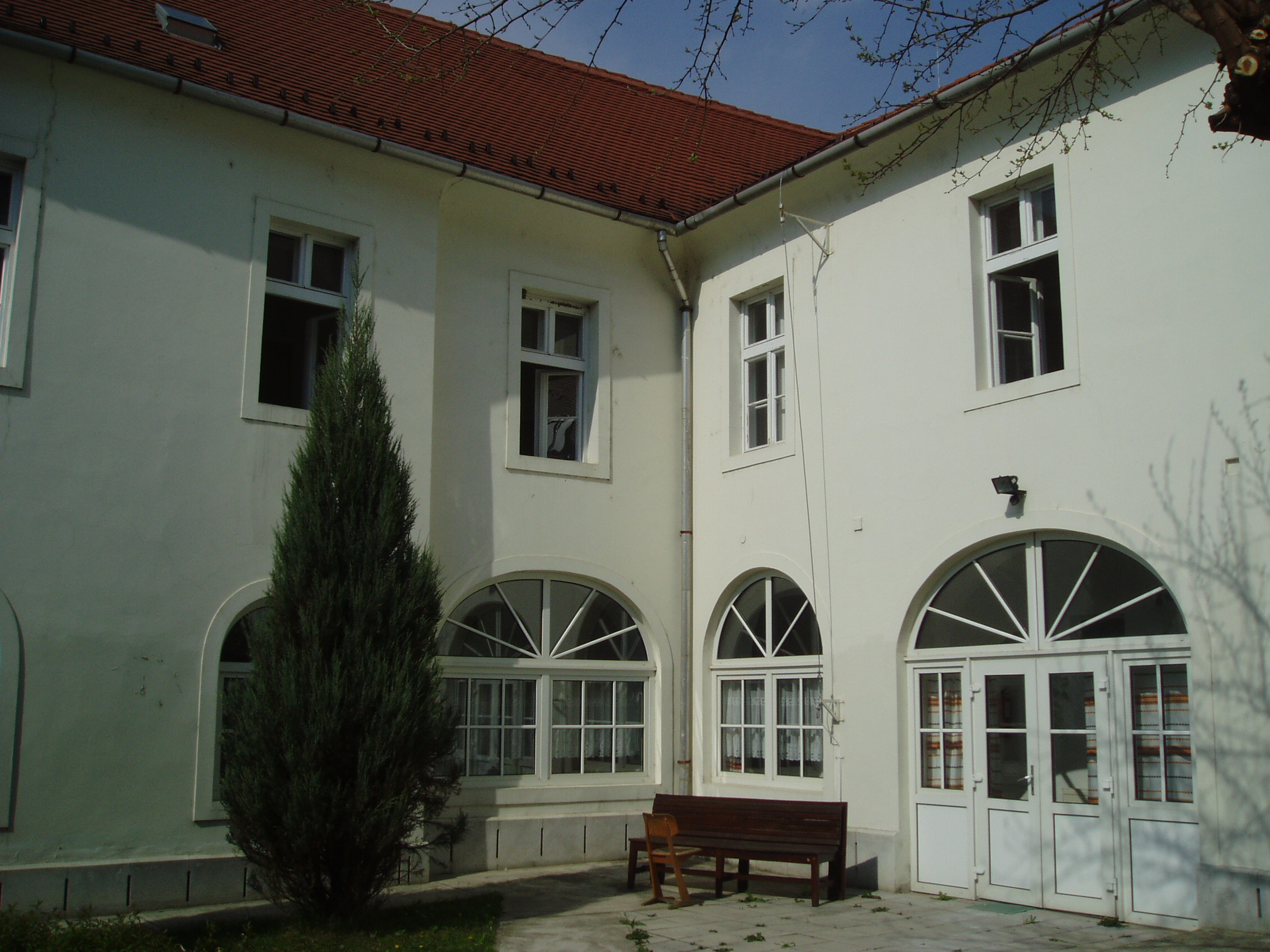 Nyilvános 1188 | 1787 | Pápa, Petőfi utca 13. Ókollégium | A híres pápai Református Kollégium első épülete 1531 és 1752 között a mai Ruszek közben, a Lábasház épületének helyén állott. 1752-ben - Mária Terézia rendeletének következtében - harminckét évig csak a közeli Adásztevelen működhetett. 1784-ben, II. József türelmi rendeletének köszönhetően térhetett vissza az iskola Pápára, s hamarosan felépült a később Petőfi Sándorról elnevezett utcában a most látható épület, amelyben 1794-ben indulhatott meg az oktatás. A jelentős tömegű, szögben megtörő késő barokk épület kimagaslik az utca XVIII-XIX. századi alacsony épületei közül. Homlokzatkiképzése egyszerű. Az épületbelsőben hangulatos, szűk folyosók és boltozatos szobák idézik a régi diákélet hangulatát. A főbejárat felett emléktábla örökíti meg egykori híres tanárainak és tanulóinak nevét. Az épületben tanított Mándi Márton István professzor. Ő volt az első Magyarországon, aki Kant filozófiáját - ebben az épületben - tanította. Az ő neéhez fűződik az adászteveli száműzetés után az iskola nagy fellendülése. A XIX. században híres tanárai voltak Tarczy Lajos és Bocsor István. Tarczy hirdette először Magyarországon katedráról a hegeli eszméket, amiért később le is kellett mondania a filozófia tanszékről. Ő volt a híres Képzőtársaság (az iskola önképzőköre) első elnöke. Egyénisége maradandó hatással volt irodalmunk számos későbbi kiválóságára, Petőfire, Jókaira, Eötvös Károlyra. (Lásd még: Pápa, Alsóvárosi temető; Pápa, Jókai u. 26.). Bocsor István 1837-től tanított itt. Magyar nyelvű történelemórái a város közönségére is nagy hatást gyakoroltak. A szabadságharc bukása után visszavonultan, tanári munkásságának élt. Alakját Kozma Andor: A karthágói harangok c. versében örökítette meg. (Lásd még: Pápa, Alsóvárosi temető; Pápa, Széchenyi u. 10.). Jeles tanár volt rajtuk kívül Váli Ferenc, Jókai Mór sógora (lásd még: Pápa, Alsóvárosi temető; Pápa, Jókai u. 20.). Ide járt iskolába az 1841/42-es tanévben Petőfi Sándor és Jókai Mór. Különösen Petőfi életében jelentett döntő momentumot az itt eltöltött időszak (lásd még: Pápa, Petőfi u. 11., Pápa, Jókai u. 13.). Az épületben tanult még Orlai Petrich Soma, Thaly Kálmán, Eötvös Károly, Kozma Sándor és mások. Az intézmény 1857-ig működött ezen a helyen, ekkor átköltözött a Március 15. tér 13-15. számú házba, az ún. Nátus-ba, majd 1895-ben utolsó végleles helyére, a Március 15. tér 9. számú monumentális épületébe. Az egykori Ókollégium ma (2007) gimnazista lányok diákotthona. Itt található a pápai születésű (lásd: Pápa, Március 15. tér 8.) Rab Zsuzsa költő és a Pápán is diákoskodott Hegyi Imre néprajztudós könyvtára. Rab Zsuzsa még életében adományozta könyvtárának jelentős részét a pápai alma maternek, míg Hegyi Imre könyvtára özvegye révén került a Református Gimnázium tulajdonába. A fénykép 2007 áprilisában készült. Felh. irod.: Németh Adél - Szabó Lajos: Pápa. Bp. Panoráma, 1989 Pápa. Szerk. Sz. Farkas Aranka. 2. kiad. Veszprém - Bp., Magyar Képek, 2000 |