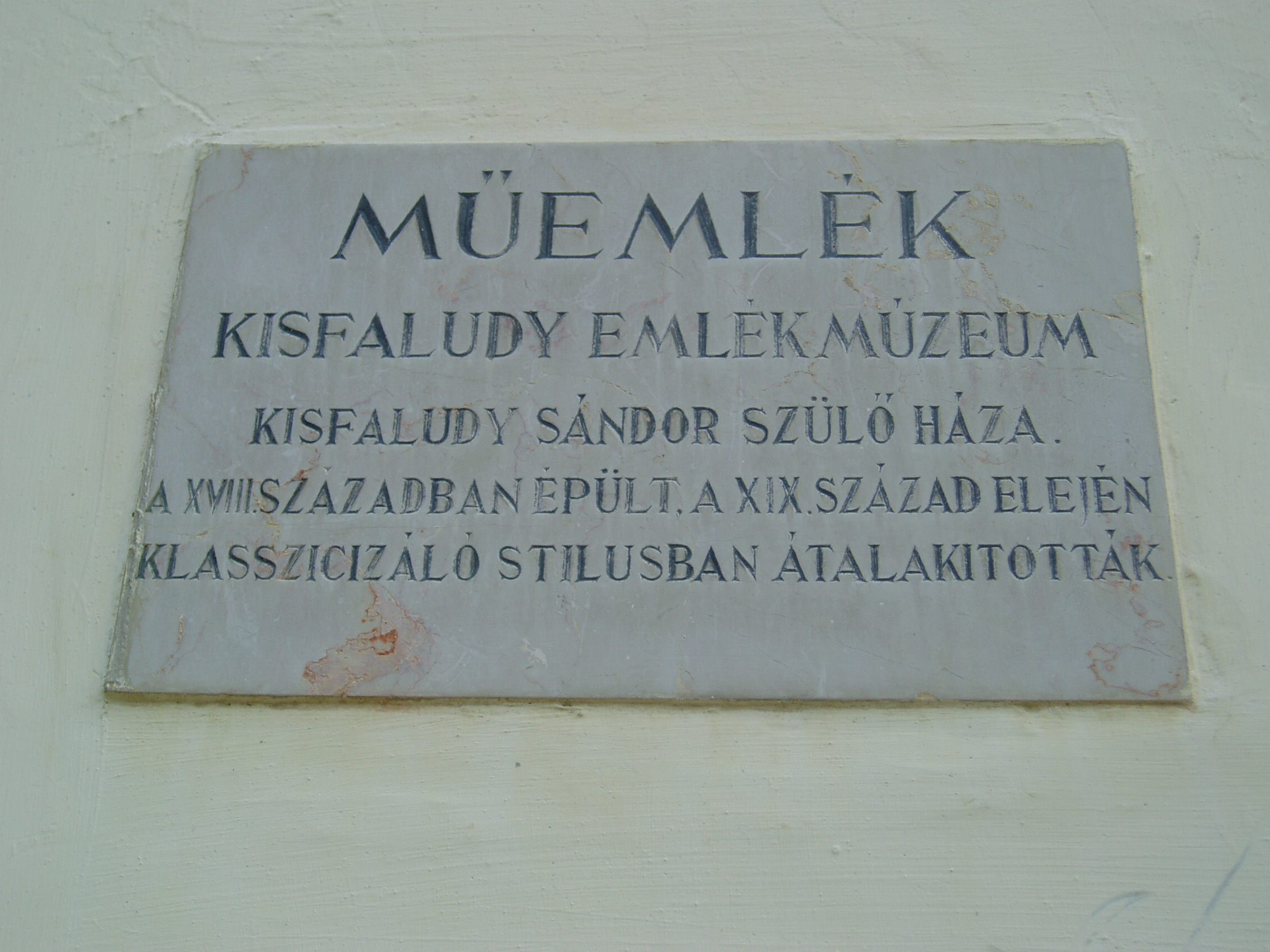 Nyilvános 1212 | 1862 | Sümeg, Kisfaludy tér 2. | Ebben a házban, amely ma a Városi Múzeum otthona, született és halt meg Kisfaludy Sándor. A XVII. században épült ház eredetileg a Sándorffy család tulajdona volt, a Kisfaludyakra örökség útján maradt. A XIX. században klasszicizáló stílusban többször is átépítették a boltíves barokk kúriát, ittlakása idején Kisfaludy Sándor is bővíttette. A költő 1772. szept. 27-én látta meg itt a napvilágot. Hat éves volt, amikor a család Tétre költözött (Károly öccse ott született 1788-ban). Eseménydús ifjúsága volt. 1793–1796 között a bécsi testőrség tagja. Részt vett a franciák elleni hadjáratban, fogságba is esett. 1799-ben leszerelt, a következő évben feleségül vette Szegedy Rózát. A házaspár Ötvös-pusztán, majd Kámban lakott. Sümegre 1805-ben pedig költöztek, itt éltek halálukig. Miután 1832-ben elveszítette szeretett feleségét, az idős költő újra megnősült, azonban második felesége, Vajda Amália is hamarosan meghalt. Ő maga itt, otthonában hunyt el 1844. október 28-án. Sírja a sümegi temetőben van (lásd: Sümeg, Temető). Kisfaludynak volt még egy ingatlana Sümegen, egy ma is álló présház (Sümeg, Külterület XI. 200). Sok időt töltött ott is, s ott vetette papírra az inszurrekció kudarcos történetét. A házat emléktábla jelöli, mellette áll Kisfaludy tölgyfája, amelyet a hagyomány szerint a költő ültetett (sajnos, fénykép nincs róla, nem találtam meg, amikor Sümegen jártam - K. K.) A fénykép 2007 júniusában készült. Felh. irod.: Koppány Tibor - Kozák Károly: Sümeg útikalauz. Veszprém, Idegenforgalmi Hivatal, 1965 Sümegi kalauz. Sümeg, Sümegi Fórum alapítvány, 1993 Kisfaludy Sándor. Veszprém, Veszprém Megyei Múzeumi Igazgatóság. /Pannon Panteon 1./ |