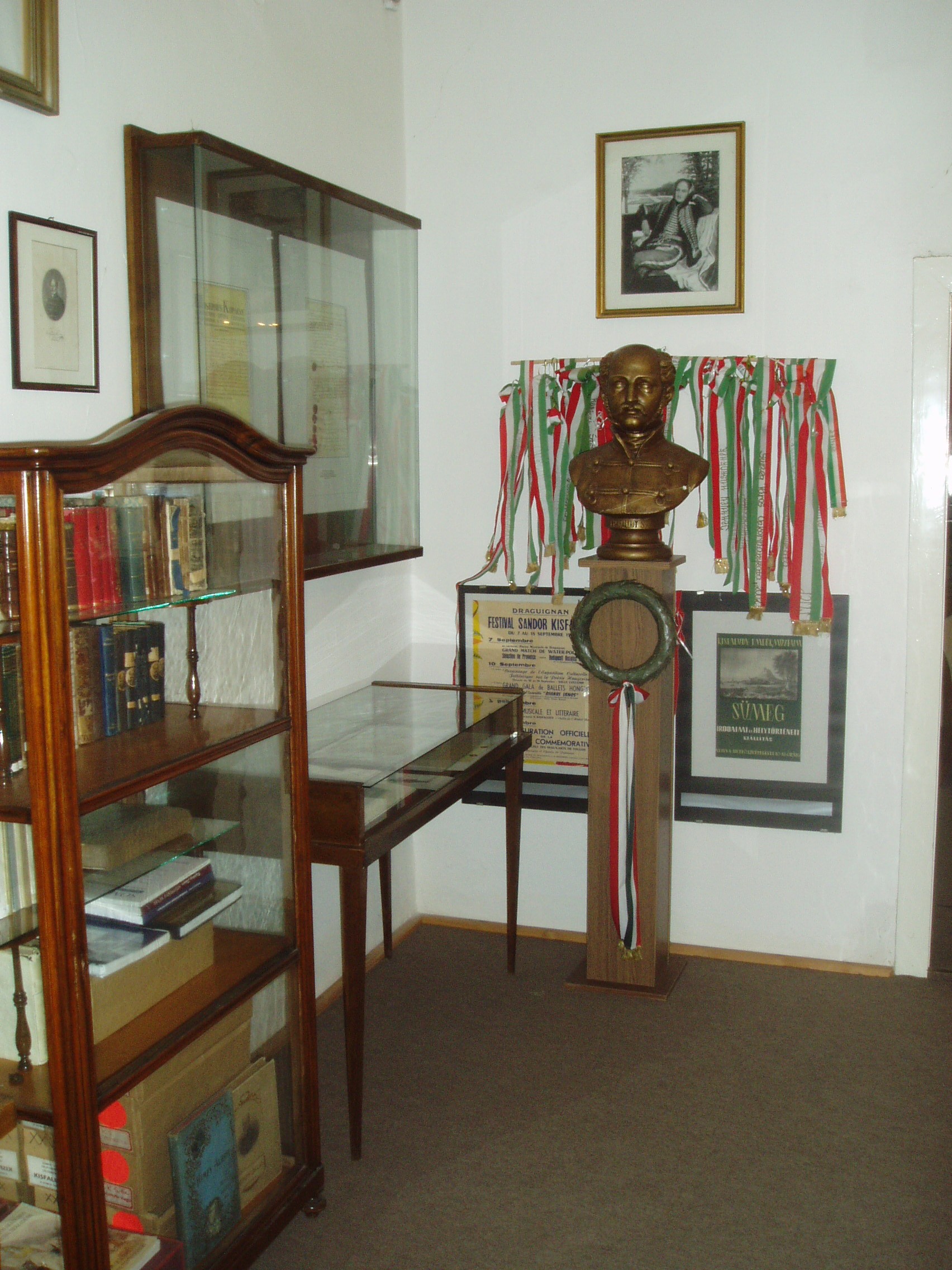 Nyilvános 1137 | 1628 | Sümeg, Kisfaludy tér 2. | Ebben a házban, amely ma a Városi Múzeum otthona, született és halt meg Kisfaludy Sándor. A XVII. században épült ház eredetileg a Sándorffy család tulajdona volt, a Kisfaludyakra örökség útján maradt. A XIX. században klasszicizáló stílusban többször is átépítették a boltíves barokk kúriát, ittlakása idején Kisfaludy Sándor is bővíttette. A költő 1772. szept. 27-én látta meg itt a napvilágot. Hat éves volt, amikor a család Tétre költözött (Károly öccse ott született 1788-ban). 1805-ben, házasságkötése után néhány évvel költözött vissza a szülőházába, s haláláig itt volt az otthona. Miután 1832-ben elveszítette szeretett feleségét, Szegedi Rózát, az idős költő újra megnősült, azonban második felesége, Vajda Amália is hamarosan meghalt. A költő ebben a házban halt meg 1844. október 28-án. Sírja a sümegi temetőben van (lásd: Sümeg, Temető). A szülőház 1950 óta múzeum. Szobái közül kettő őrzi egykori híres lakója emlékét. Személyes és családi tárgyai, bútorai, könyvek, képek ismertetik meg a látogatóval a Himfy-versekkel és a balatoni várak romantikus regéit megörökítő műveivel a maga korában nagy népszerűségnek örvendő költő életét és korát. A fénykép 2007 júniusában készült. Felh. irod.: Koppány Tibor - Kozák Károly: Sümeg útikalauz. Veszprém, Idegenforgalmi Hivatal, 1965 Sümegi kalauz. Sümeg, Sümegi Fórum alapítvány, 1993 Kisfaludy Sándor. Veszprém, Veszprém Megyei Múzeumi Igazgatóság. /Pannon Panteon 1./ |