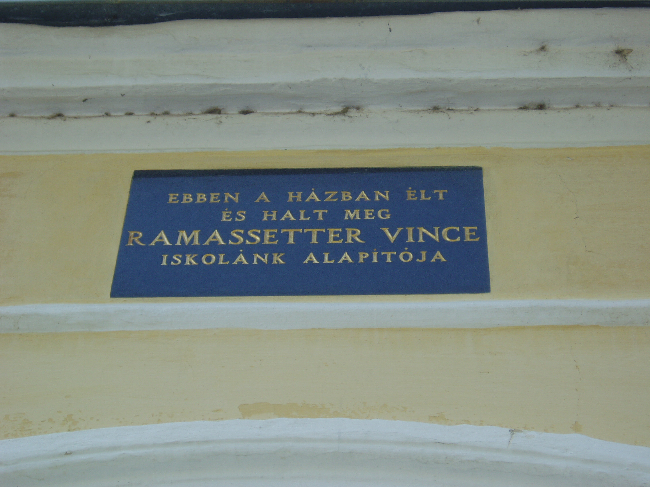 Nyilvános 1168 | 1665 | Sümeg, Ramassetter utca 10. | A Ramasetter utca házai jórészt a XVII. század második felében épültek, bár a legtöbbet később átalakították. A 10. számú épület is barokk stílusú, földszintes ház volt eredetileg, amelyre később emeletet építettek, s homlokzatát eklektikus stílusban átalakították. Az épület homlokzatán olvasható emléktábla szerint ebben a házban élt és halt meg Ramassetter Vince, "Sümeg atyja". Ramassetter Vincének a városban egészalakos szobra (lásd: Sümeg, Kossuth u. 13.) és több emléktáblája is látható, köztük a közelben álló szülőházán is (lásd: Sümeg, Deák F. u. 6.). A város jótevője a helyi köztemetőben nyugszik (lásd: Sümeg, Temető: Ramassetter Vince sírja). A fénykép 2007 júniusában készült. Felh. irod.: Koppány Tibor - Kozák Károly: Sümeg útikalauz. Veszprém, Idegenforgalmi Hivatal, 1965 Veszprém megyei életrajzi lexikon. Veszprém, Veszprém Megyei Önkormányzat Közgyűlése, 1998 www.ekmk.hu/emlekhely/Emlekhelyek.html |