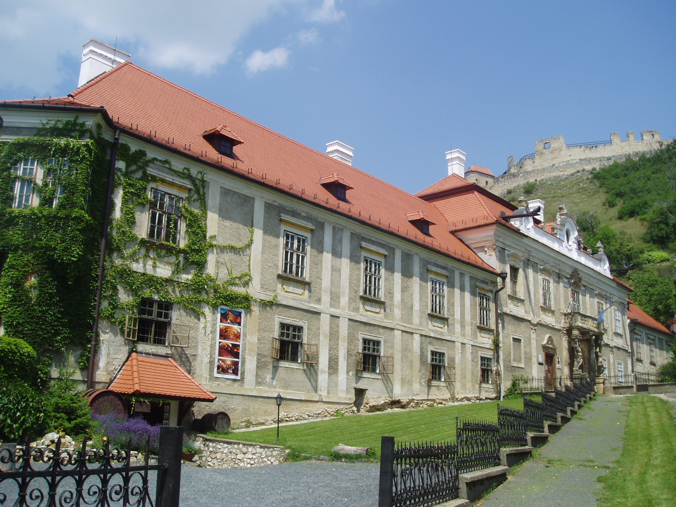 Nyilvános 1120 | 1702 | Sümeg, Szent István tér 10. Püspöki palota | A város egyik legszebb épülete az 1748 és 1755 között emelt püspöki palota. Építtetője Padányi Bíró Márton, aki 1745-ben lett veszprémi püspök, aki élete végéig nagyrészt Sümegről irányította az egyházmgye életét. Sümegen is hunyt el 1762. augusztus 16-án, 67 éves korában. Az épület a domborzati viszonyokat követve egy részében földszintes, nagyobb részében viszont emeletes. Középen a barokk építészet szabályai szerint kiemelt, díszesebb, az íves főkaput tartalmazó épületrész látható. A főkapu felett lévő faragott kőmellvéd erkélyt Atlasz-figurák tartják. A főpárkány alatt helyezték el az építtető püspök gazdagon díszített címerét. Az épület ebédlőjében és kápolnájában a falképek Vogl György, a stukkók Antonio Orsatti 1750-ben készült barokk stílusú alkotásai; a szobák stukkódíszítése és falburkolata szintén barokk stílusú. A palotát 1830 körül klasszicista stílusban átalakították. A fénykép 2007 júniusában készült. Felh. irod.: Koppány Tibor - Kozák Károly: Sümeg útikalauz. Veszprém, Idegenforgalmi Hivatal, 1965 Látnivalók Veszprém megyében. Miskolc, Well-PRess, 2004 Sümegi kalauz. Sümeg, Sümegi Fórum alapítvány, 1993 Hőgyész László: Sümeg évszázadai. Veszprém, 1989 |