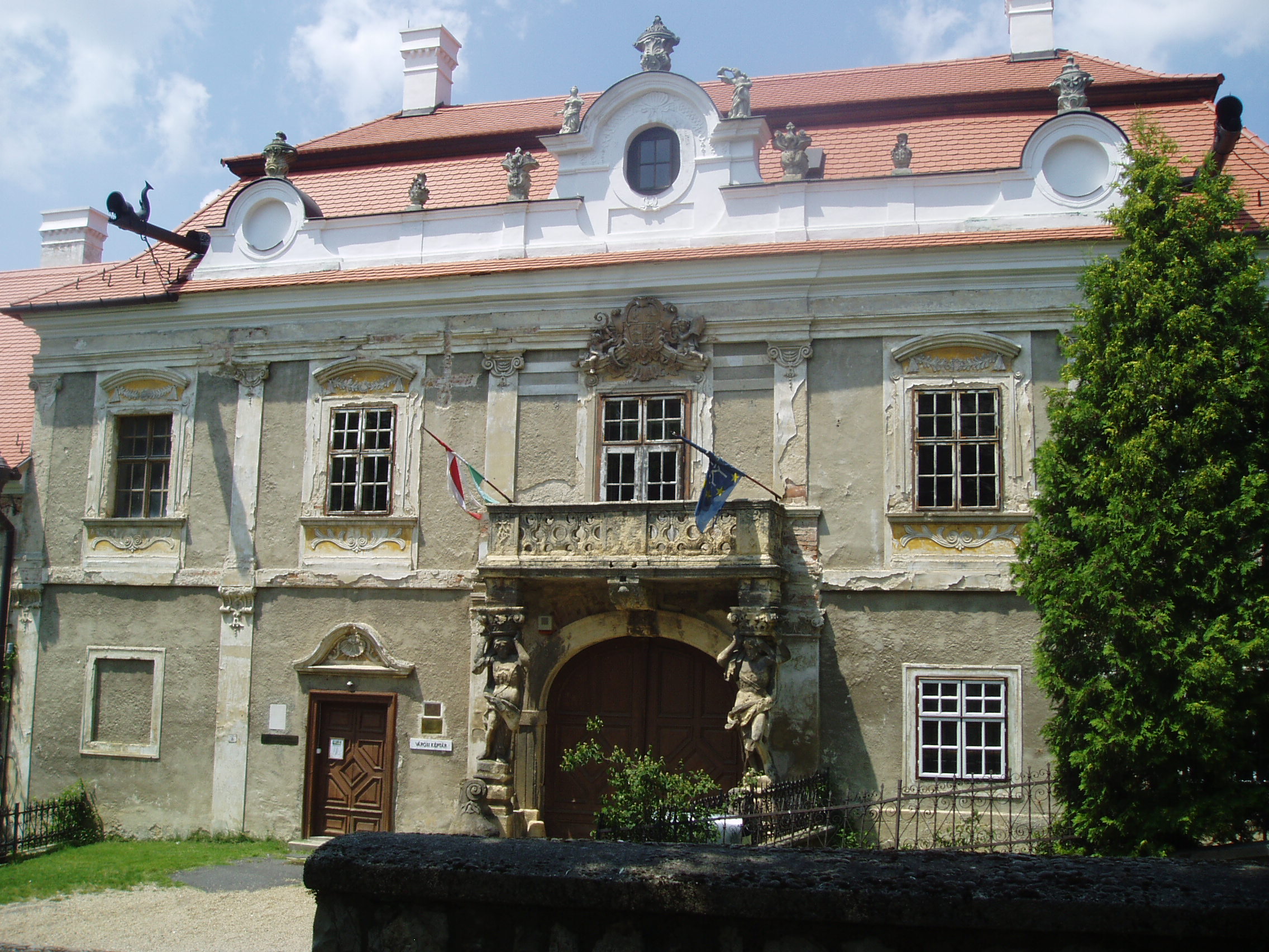 Nyilvános 1123 | 1665 | Sümeg, Szent István tér 10. Püspöki palota | A város egyik legszebb épülete az 1748 és 1755 között emelt püspöki palota. Építtetője Padányi Bíró Márton, aki 1745-ben lett veszprémi püspök, aki élete végéig nagyrészt Sümegről irányította az egyházmgye életét. Sümegen is hunyt el 1762. augusztus 16-án, 67 éves korában. Az épület a domborzati viszonyokat követve egy részében földszintes, nagyobb részében viszont emeletes. Középen a barokk építészet szabályai szerint kiemelt, díszesebb, az íves főkaput tartalmazó épületrész látható. A főkapu felett lévő faragott kőmellvéd erkélyt Atlasz-figurák tartják. A főpárkány alatt helyezték el az építtető püspök gazdagon díszített címerét. Az épület ebédlőjében és kápolnájában a falképek Vogl György, a stukkók Antonio Orsatti 1750-ben készült barokk stílusú alkotásai; a szobák stukkódíszítése és falburkolata szintén barokk stílusú. A palotát 1830 körül klasszicista stílusban átalakították. A fénykép 2007 júniusában készült. Felh. irod.: Koppány Tibor - Kozák Károly: Sümeg útikalauz. Veszprém, Idegenforgalmi Hivatal, 1965 Látnivalók Veszprém megyében. Miskolc, Well-PRess, 2004 Sümegi kalauz. Sümeg, Sümegi Fórum alapítvány, 1993 Hőgyész László: Sümeg évszázadai. Veszprém, 1989 |