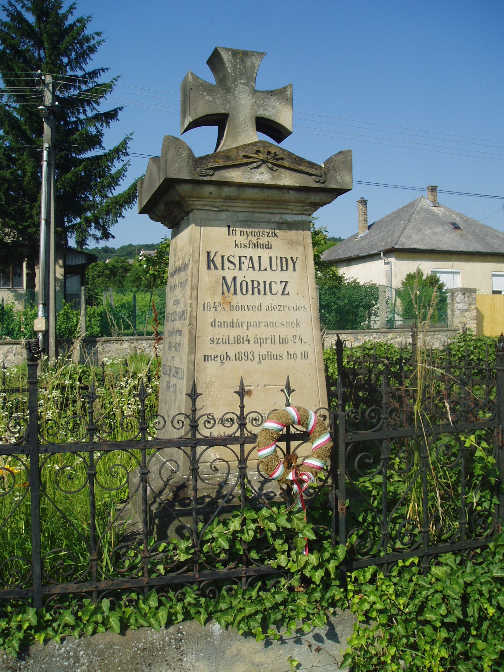 Nyilvános 1219 | 3297 | Sümeg, Temető. Kisfaludy Mór sírja | Sümeg délkeleti határában, a Tapolcára vezető út mellett emelkedő lankás domboldalon találjuk a város köztemetőjét. Helyét még Bíró Márton püspök jelölte ki; jelentősebb számban a XIX. század eleje óta kezdtek ide temetkezni. A temetődomb tetején áll az 1816-ban épített, későbarokk stílusú temetőkápolna. Körülötte a sümegi élet utolsó két évszázada szinte valamennyi híres személyiségének sírja fellelhető. A Tapolcai útra nyíló alsó temetőkapu mellett található Kisfaludy Mór és családja sírkertje. Az empire stílusú sírkő eredetileg Szegedy Róza nyughelyét jelölte. Amikor az 1900-as évek elején egyesítették sírját férjéével, átfaragták sírkövét, s azóta Kisfaludy Mór és családja sírját jelöli. Itt nyugszik Kisfaludy Mór (1814-1893) 1848-as honvéd alezredes, dandárparancsnok, Kisfaludy Sándor unokaöccse. Részt vett az isaszegi, a kápolnai, a pákozdi harcokban, jelen volt Budavár visszafoglalásánál. Aradon halálra ítélték, amit később 16 év várfogságra változtattak. Ismerősei közbenjárására két év múlva kiszabadult, s Sümegre költözött. Véglegesen visszavonult a közélettől, gazdálkodással foglalkozott. Több családtagja is itt van eltemetve. A fénykép 2007 júniusában készült. Felh. irod.: Koppány Tibor - Kozák Károly: Sümeg útikalauz. Veszprém, Idegenforgalmi Hivatal, 1965 Sümegi kalauz. Sümeg, Sümegi Fórum Alapítvány, 1993 Miklósi-Sikes Csaba: Kőbe vésett történelem. A sümegi városi temetők története és sírjelei 1950-ig. Sümeg, Sümegi Fórum Alapítvány, 2002 Veszprém megyei életrajzi lexikon. Veszprém, Veszprém Megyei Önkormányzat Közgyűlése, 1998 |