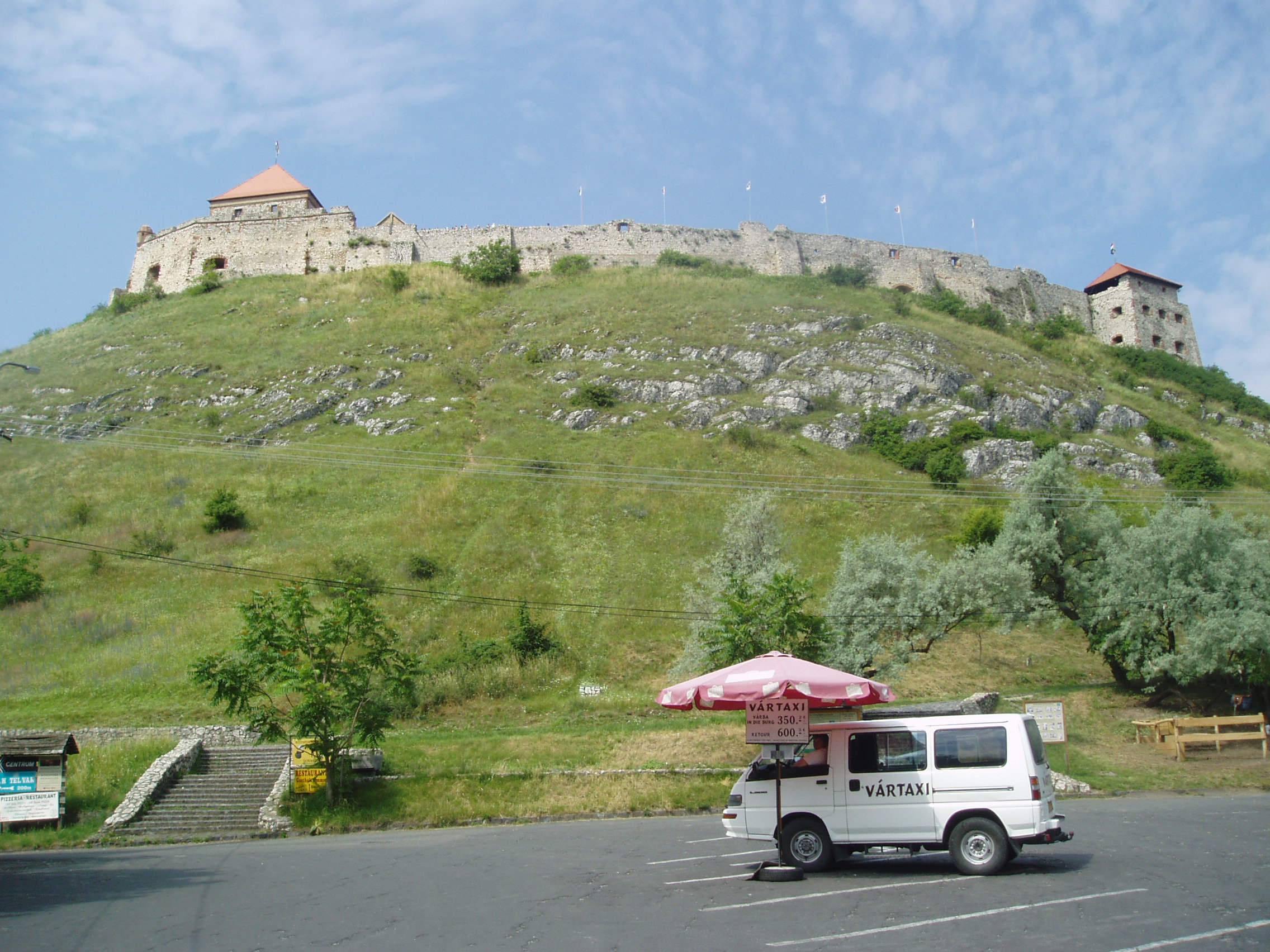 Nyilvános 1145 | 1673 | Sümeg, Vár | A Dunántúl egyik legnagyobb méretű vára a helység fölötti, szabályos kúp alakú mészkősziklán magasodik. Az utas bármerre is jár a városban, szinte mindenhonnan látható, s minden oldalról más-más látványt nyújt. Magja, az ún. öregtorony a XIII. században épült. Egyes források szerint a tatárjárás idején IV. Béla is tartózkodott itt. Az erődítményt a XV. században megnagyobbították. A XVI. század közepén olaszbástyákkal erősítették meg; a törökök nem is tudták bevenni, noha az alatta lévő települést elpusztították. 1713-ban a császári csapatok felgyújtották. Romos állapotából 1959 és 1964 között állították részben helyre. Ma a legjobb állapotban lévő magyarországi vár, s rendkívüli módon őrzi középkori hangulatát. A várban múzeumot is berendeztek, melyben megismerhetjük történetét, a régi büntetések különböző módjait és eszközeit, valamint szablya- és kocsigyűjteményt láthatunk. A vár látványos rendezvények, várjátékok színhelye. 1994 óta évenként az idegenforgalmi idényben a veszprémi Petőfi Színház művészei tartanak előadásokat a Sümegi Várszínház rendezvénysorozatának keretében. A fénykép 2007 júniusában készült. Felh. irod.: Koppány Tibor - Kozák Károly: Sümeg útikalauz. Veszprém, Idegenforgalmi Hivatal, 1965 Látnivalók Veszprém megyében. Miskolc, Well-PRess, 2004 Sümegi kalauz. Sümeg, Sümegi Fórum alapítvány, 1993 Hőgyész László: Sümeg évszázadai. Veszprém, 1989 |