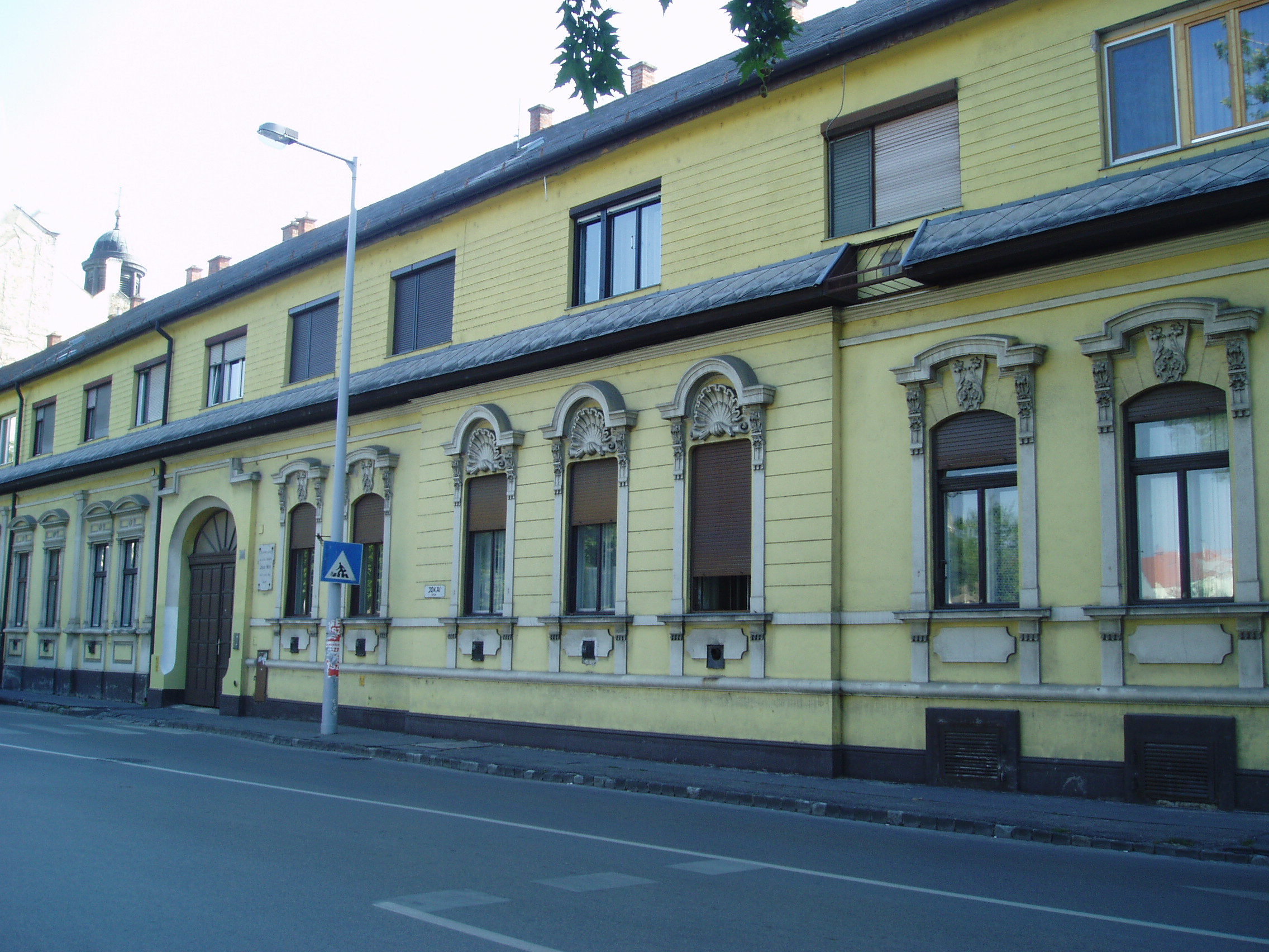 Nyilvános 1303 | 2383 | Kecskemét, Jókai utca 6-8. | Diák korában az akkor ezen a helyen állott épületben, Gyenes Mihályék házában lakott Jókai Mór 1842-44 között. Házigazdája nagy tudású városi mérnök volt, aki az akkor még festőművésznek készülő fiút gyakran magával vitte környékbeli útjaira. Az ekkoriban megismert meg népszokásokat, mint például a pünkösdi király választást vagy a pusztai párbajt később regényeiben is megörökítette. Házigazdájának is köszönhetően írta később: "Itt lett belőlem ember és különösen itt lett belőlem magyar író." Emléktábláját még életében, írói működésének 50. évfordulóján avatták fel. A fénykép 2006 augusztusában készült. Felh. irod.: Heltai Nándor: Kecskemét. Kecskeméti Lapok, 1998 |
