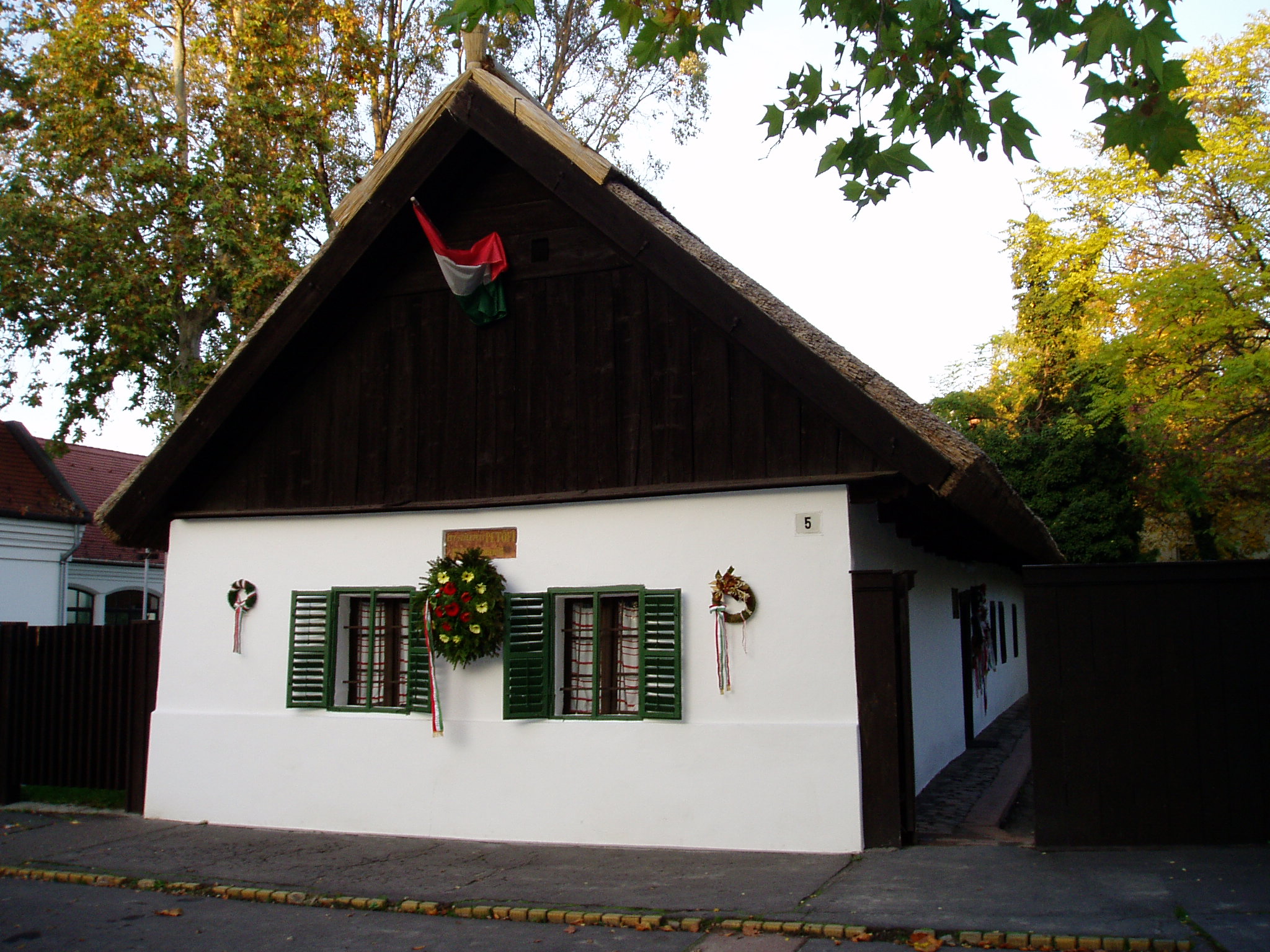 Nyilvános 1291 | 2010 | Kiskőrös, Petőfi tér 5. Petőfi Sándor szülőháza | A népi stílusú lakóház 1790 körül épült. A nádfedeles, deszkaoromzatú, már nem új házat Petrovics István hentes és mészáros 1821-ben vette bérbe, s felesége, Hrúz Mária itt szülte első gyermeküket, Sándort. Az 1790 körül épült zsellérházban kapott helyet a Petőfi Emlékmúzeum. A ház homlokzati márványtábláján ez olvasható: "Itt született Petőfi 1822. december 31-én". A bejárati ajtó szemöldökfája felett a költő sorait olvashatjuk: "Szent a küszöb, melyen beléptem én, / Oh szent a szalma kunyhók küszöbe. / Mert itt születnek a nagyok, az ég / A megváltókat ide küldi be." A ház konyhájában korabeli használati tárgyak láthatók. Az utcai szoba a Petrovics család bútoraival és egykori használati tárgyaival emlékeztet arra, hogy ott született a nemzet nagy költője. A képen látható ágyat az elszegényedett Petrovics család annakidején Dömösön eladta más bútorokkal együtt, s 1890-ben a Magyar Írók és Művészek Társasága kutatta fel és vásárolta meg. A fénykép 2004 októberében készült. Felh. irod.: Látnivalók Bács-Kiskun megyében. /Vendégváró/. Well-Press Kiadó, 2002. Petőfi emlékhelyek a Kárpát-medencében. Kiskőrös, Petőfi Sándor Társaság, 1996 |