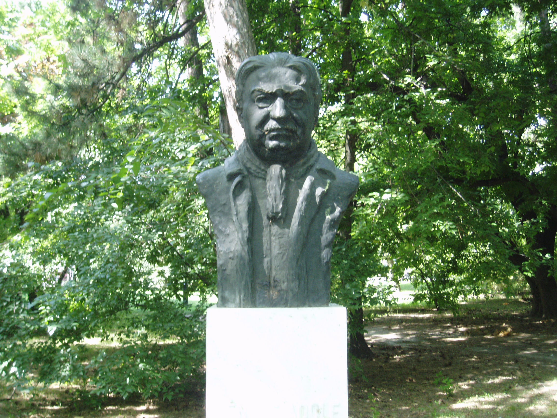 Nyilvános 1179 | 1740 | Kecskemét, Katona József park: Fényes Adolf szobra | A Vasútállomás közelében levő parkban alakították ki Kecskemét panteonját. Fényes Adolf (1867-1945) kecskeméti születésű festőművész szobra Petri Lajos alkotása. A fénykép 2006 augusztusában készült. Felh. irod.: Heltai Nándor: Kecskemét. Kecskeméti Lapok, 1998 |