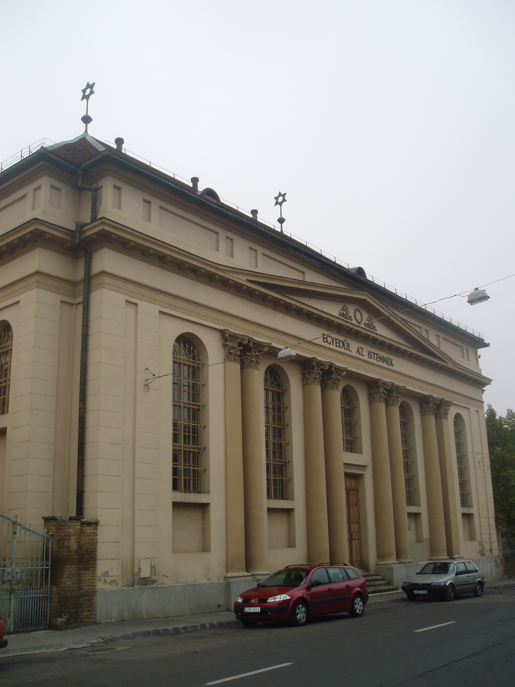 Nyilvános 1154 | 1712 | Baja, Munkácsy utca 19. Zsinagóga - Ady Endre Városi Könyvtár | A nemes arányú, későklasszicista zsinagóga az 1840-es években épült Frey Lajos tervei alapján annak a korábbi imaháznak a helyére, amely a várost sújtó nagy 1840-es tűzvészben leégett. Ekkor már virágzó, mintegy kétezres lélekszámú közösség élt a városban és környékén. Adományaikból 1845-re el is készült az új épület. Átadásakor első alkalommal avattak Magyarországon magyar nyelvű beszéddel zsinagógát. Az épület tájolása nem a vallási előírásokhoz, hanem az utca építési vonalához igazodik. Hosszabbik oldalával van az utcafronton, középütt a kijárati ajtóval. Fölötte lapos timpanonban a felirat magyarul: "Egyedül az Istennek". Kert felőli oszlopos bejárata felett is timpanon látható, rajta héber betűs felirat: "Nem más ez, mint Isten háza és ez az ég kapuja". Az épületbe belépő egy vörös márvány kézmosó mellett és egy kisebb karzat alatt érkezik a főhajóba. A zsinagóga belső tereit kettős pillérek három hajóra osztják, tetején igényes ornamentikájú csehsüveges boltozatrendszer nyugszik. A főhajó végén látható a frigyszekrény, melyet klasszicista építmény foglal magába. Benne kézzel írott tóra tekercsek és eredeti vallási kegytárgyak találhatók. Az épületet az 1980-as években újították fel, eredeti állapotát messzemenően szem előtt tartva. A feladat megoldását nem kevés elismerés illette: az építészek és közreműködők több kitüntetést is elnyertek, a tervező, Tornai Endre Ybl-díjat kapott. Az épület 1985 ősze óta az Ady Endre Városi Könyvtár otthona. Bár a helyi jelentős könyvgyűjtemények jó része 1945 körül ebek harmincadjára került, a Városi Könyvtár így is rendelkezik számos könyvészeti ritkasággal. Állományába került a bajai ferencesek kolostori könyvtárának egy töredéke, kiegészítve a Zichy, iktári Bethlen és hadik-Barkóczy grófok könyvtárainak hagyatékával. Így régi könyvek tekintetében a legjelentősebb magyar kistelepülési könyvtári gyűjteményt képezi. Különlegességei között 3 ősnyomtatvány, 246 darab antikva és számos unicalis példány található. A fénykép 2007 októberében készült. Felh. irod.: www.baja-aevk.hu |
