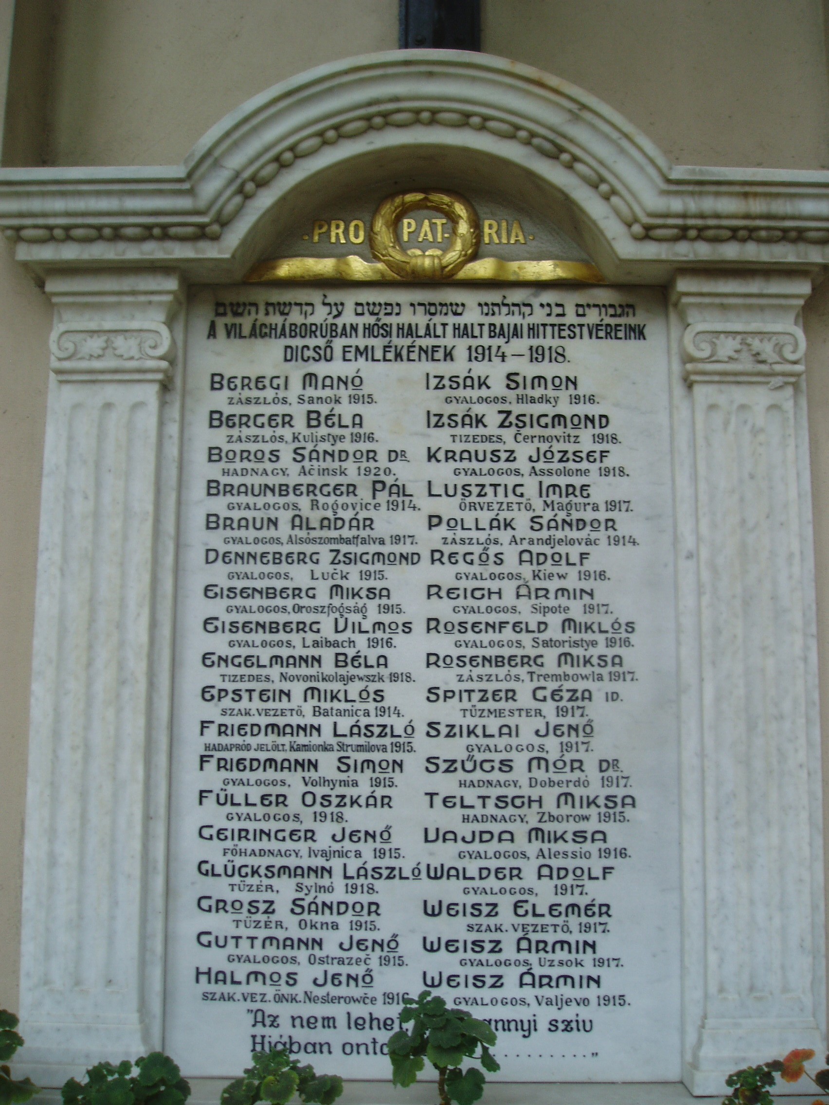 Nyilvános 1185 | 1650 | Baja, Munkácsy utca 19. Zsinagóga - Ady Endre Városi Könyvtár | A nemes arányú, későklasszicista zsinagóga az 1840-es években épült Frey Lajos tervei alapján annak a korábbi imaháznak a helyére, amely a várost sújtó nagy 1840-es tűzvészben leégett. Az épületet az 1980-as években újították fel. 1985 ősze óta az Ady Endre Városi Könyvtár otthona. A hajdan virágzó bajai zsidó közösség, amely a bírói intézmény megszűnése után a város első polgármesterét, de egy időben a berlini és a müncheni főrabbit is adta, a második világháború alatt gyakorlatilag megszűnt. A háború és a koncentrációs táborok borzalmait túlélők a kert bejárattal szemben lévő szögletében 1947-ben megépítették a mártírok emlékfalát, melynek márványtábláin több, mint ezer elhurcolt bajai zsidó neve szerepel. Minden évben, május utolsó vasárnapján gyász-istentiszteletet tartanak, így hajtva fejet a közösség emléke előtt, s osztozva a megmaradtak fájdalmában. A fénykép 2007 októberében készült. Felh. irod.: www.baja-aevk.hu |