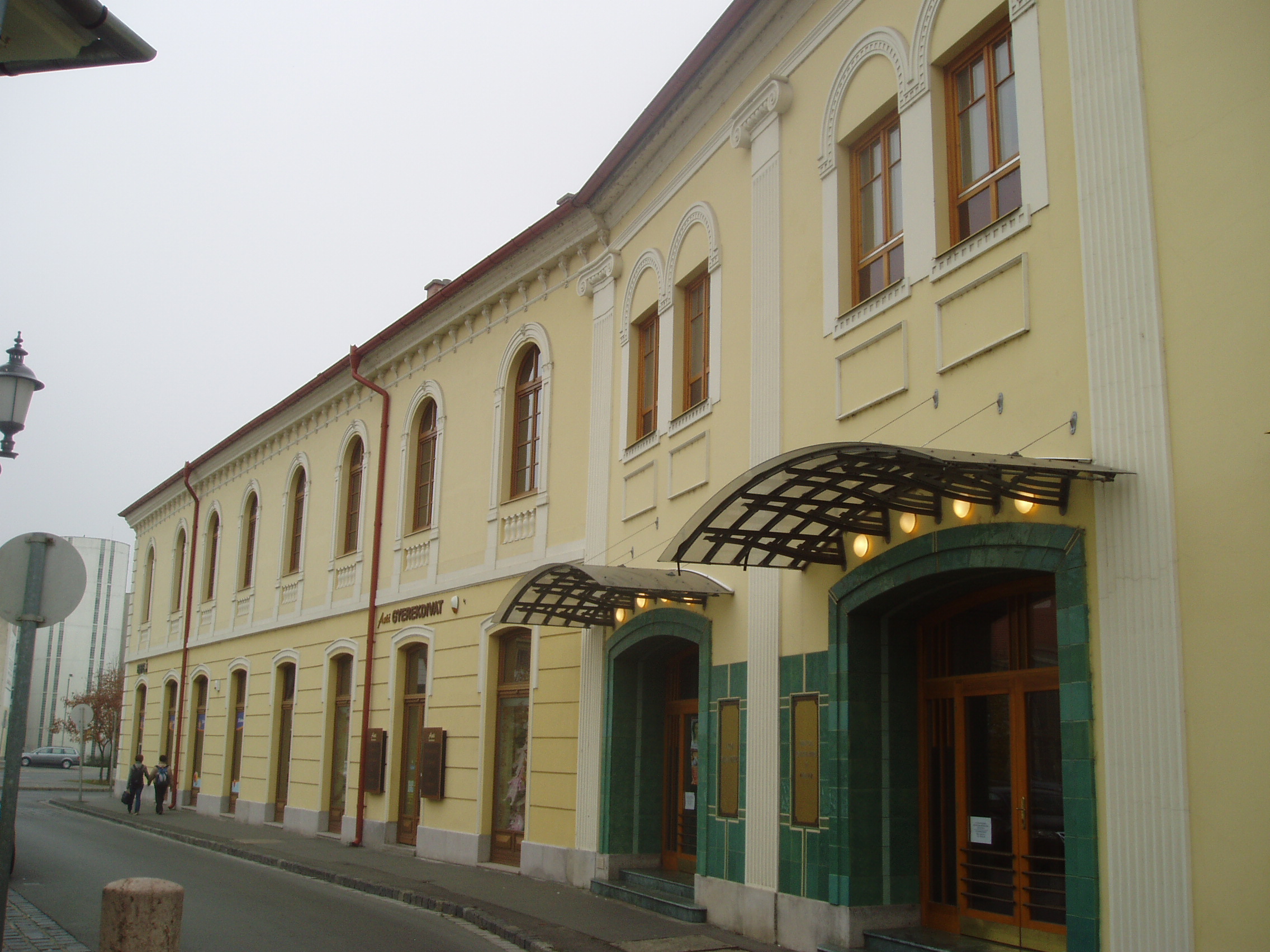 Nyilvános 1152 | 1690 | Baja, Oroszlán utca 3. | A József Attila Művelődési Központ színházának helyén hajdan az Arany Oroszlánhoz címzett vendégfogadó állt. Az 1770-es évektõl, amikor Baja gyakran volt Bács-Bodrog vármegye megyegyűléseinek helyszíne, itt gyűltek össze a képviselők. Itt adtak találkozót egymásnak a vidék gazdag kereskedői, itt úsztak el egész vagyonok a napokig tartó kártyacsatákon. Ez a fogadó volt a vidéki magyar nyelvű színjátszás egyik bölcsője is. Amikor 1827-ben Kilényi György játszott itt társulatával, a színigazgató az akkoriban Baján élő (lásd: Baja, Madách utca eleje) Rózsavölgyi Márkot és a Szabadkán működő Arnold Györgyöt kérte fel, hogy legyen segítségükre zenés darabok bemutatásában. A Kemény Simon című darab Arnold, az Illyés sapkája című pedig Rózsavölgyi zenéjével került bemutatásra. Az Arany Oroszlán helyére épült színházterem száz évvel a Kilényi–féle társulat szereplése után ismét a bajai zenei élet jelentős eseményének helyszíne lett: itt tartotta nyitóhangversenyét a Bajai Liszt Ferenc Kör 1926. november 15-én. A színházterem mindmáig — jelenleg a József Attila Művelődési Központ kezelésében — számtalan színházi, zenei, táncművészeti programnak ad helyet. A fénykép 2007 októberében készült. Felh. irod.: Bánáti Tibor: Bajai arcképcsarnok. Baja, Türr Múzeum, 1996 |