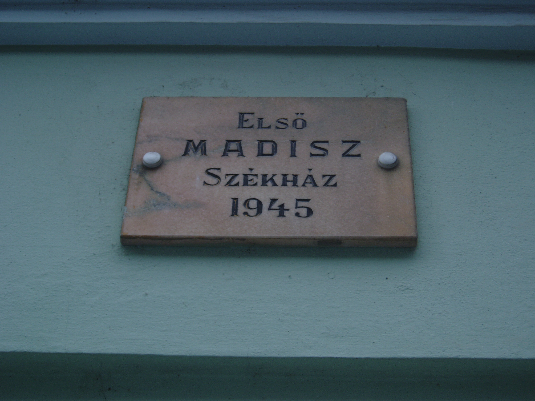 Nyilvános 1184 | 1630 | Baja, Vörösmarty utca 4. | Ebben a házban volt a bajai MADISZ első otthona 1945-ben. A Magyar Demokrata Ifjúsági Szövetség a párton kívüli 15-24 éves ifjúságot tömörítő tömegszervezet volt. Az MKP kezdeményezésére és javaslatára Szegeden 1944. december 31-én alakult meg. 1950-ben beolvadt a DISZ-be (Dolgozó Ifjúság Szövetsége), amelyből 1957. március 21-én Magyar Kommunista Ifjúsági Szövetség (KISZ) néven alakult meg a párt vezetése alatt az új ifjúsági tömegszervezet. A fénykép 2007 októberében készült. Felh. irod.: Politikai kisszótár. Bp. Kossuth Könyvkiadó, 1986 |