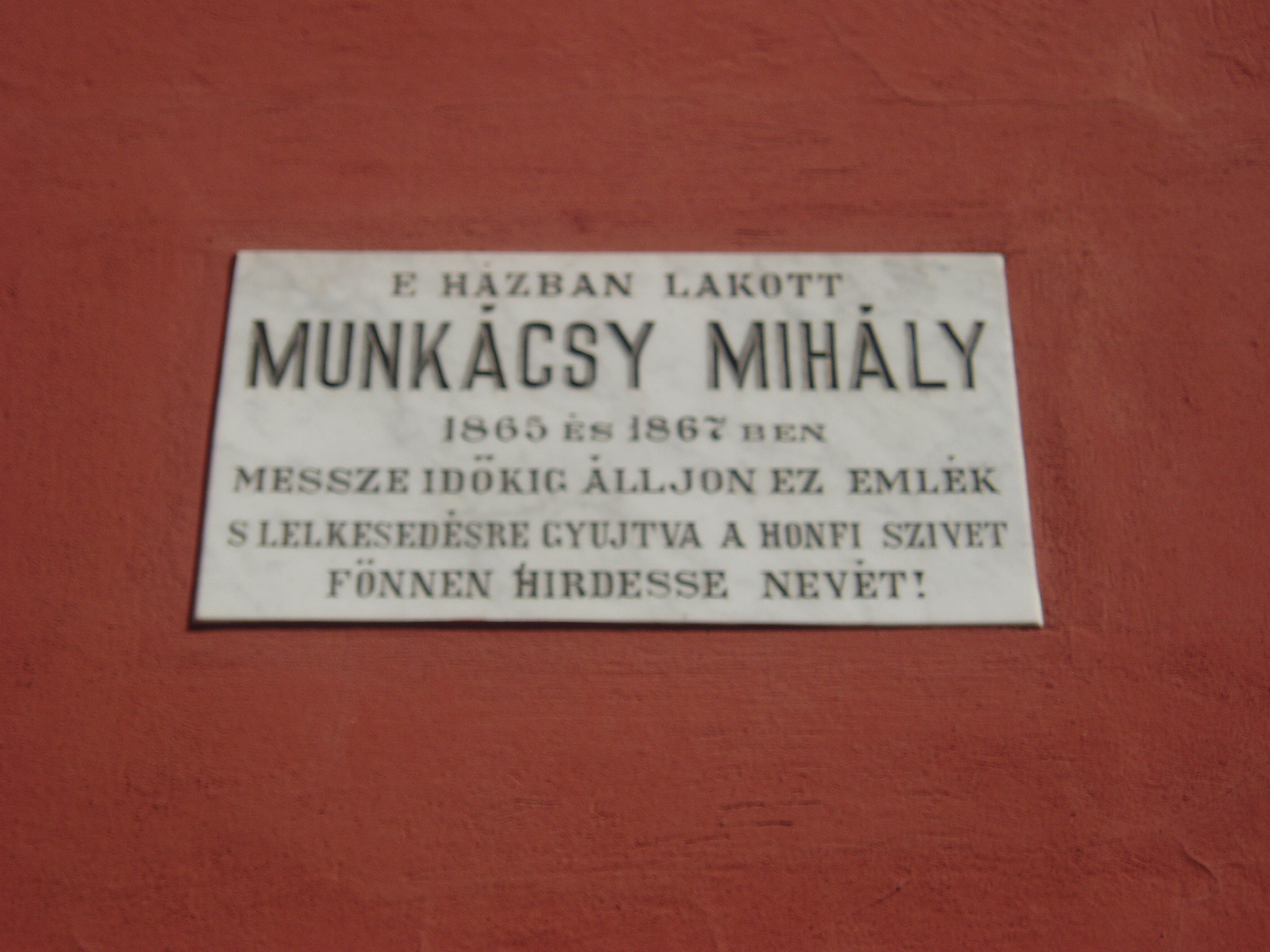 Nyilvános 1221 | 1746 | Pécs, Munkácsy utca 31. | A romantikus stílusú, földszintes lakóházon Munkácsy Mihály emléktáblája olvasható. 1865-ben és 1867-ben itt szállt meg rokonainál pécsi tartózkodásai idején. A fénykép 2006 júliusában készült. Felh. irod.: Csorba Csaba: Pécs. Bp. Panoráma, 1983 |