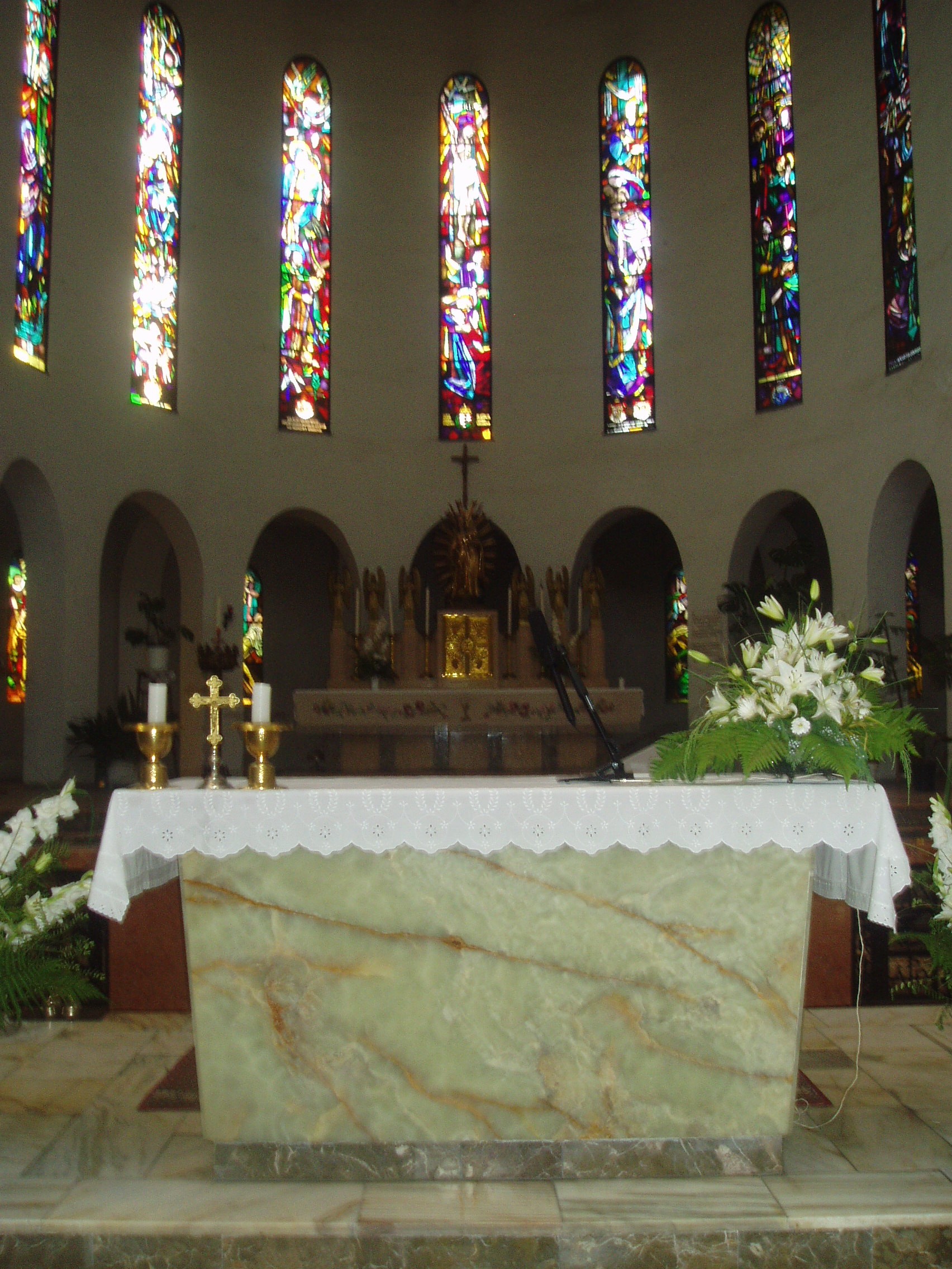 Nyilvános 1713 | 4397 | Mohács, Széchenyi tér: Fogadalmi templom | A város fő terének középpontjában áll a Fogadalmi templom hatalmas tömbje. A mohácsi csata 400. évfordulójára emlékezve építették 1929 és 1940 között, Árkay Aladár és Árkay Bertalan tervei alapján. A bizánci stílust követő, historizáló stílusú templom különlegessége, hogy alapjaiba háromezer magyar község, ötvenkét város és huszonöt megyeháza udvarából felvett egy-egy kilós földcsomagokat helyeztek el 1929-ben, jelképezve ezzel az ország összefogását. Az ország első betonhéjazatú építményének kupolája 30 méter magas és 20 méter átmérőjű, a templom 3600 fő befogadására alkalmas. Az épületben lévő műalkotások megörökítik a magyar történelem legfontosabb állomásait. Az íves oldalfalakat a középkori székesegyházakéra emlékeztető, szenteket ábrázoló üvegablakok díszítik, melyek Árkayné Sztehlo Lili (1897-1959) munkái. A kupola nonfiguratív ábrákkal teli ablakai 1984-ben Michael Gaussling német üvegművész munkája nyomán készültek. A templombelső mozaikképei, melyek Kolbe Mihály (1907-1990) mohácsi festőművész munkái, színeikkel és jelképeikkel az 1526-os mohácsi csatára utalnak. A Mohácsi Boldogasszonyként ismert régi Madonna-szobor eredete a török időkre nyúlik vissza. A fénykép 2006 júliusában készült. Felh. irod.: Látnivalók Pécsett és Baranyában. Miskolc, Well-PRess, 1998 www.mohacs.hu www.vendegvaro.hu |