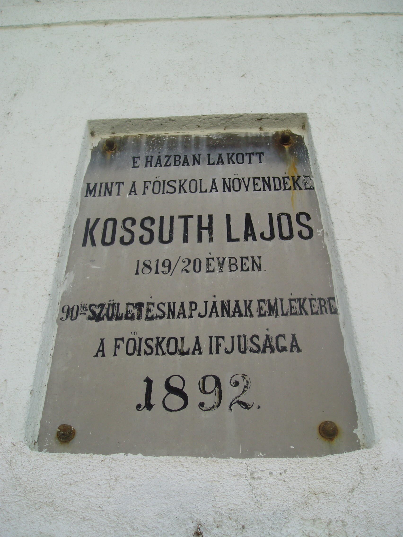 Nyilvános 1124 | 1777 | Sárospatak, Kossuth utca 43. | Mint az épület homlokzatán Kossuth Lajos születésének 90. évfordulója alkalmából elhelyezett emléktáblán is olvasható, ebben a házban lakott a nagy államférfi, amikor az 1819/20-as tanévben a Református Kollégium (lásd: Sárospatak, Rákóczi u. 1.) diákja volt. A fénykép 2007 augusztusában készült. |