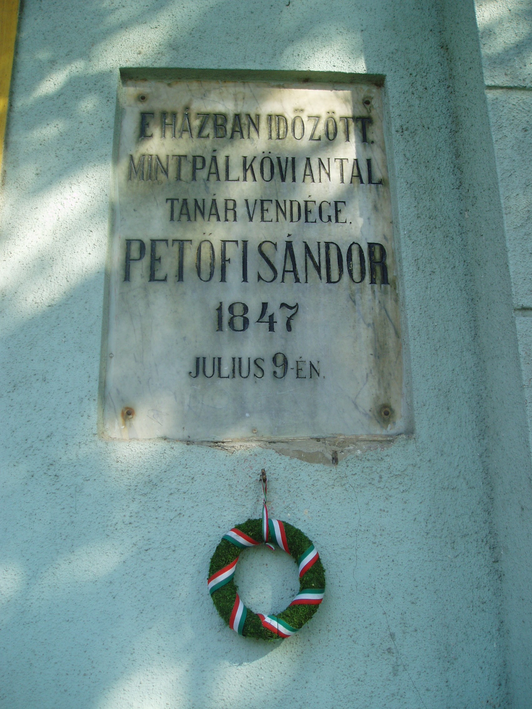 Nyilvános 1115 | 1577 | Sárospatak, Rákóczi utca 17. | Itt lakott Pálkövi Antal kollégiumi tanár, akinek lakásán vendégeskedett 1847. július 9-én Petőfi Sándor. Petőfi erdélyi útja során látogatta meg Sárospatakot, Miskolcról jött a Hegyalján keresztül. Délután érkezett a városba s Pálkövi tanárnál szállt meg. Másnap Sátoraljaújhelyre ment meglátogatni barátját, Kazinczy Gábort, Kazinczy Ferenc unokaöccsét (lásd: Sátoraljaújhely, Dózsa Gy. u. 11.), útba ejtve Széphalmot (lásd: Széphalom, Kazinczy Mauzóleum) is. A költő Sárospatakról keltezte XI. Úti levelét. A fénykép 2007 augusztusában készült. Felh. irod.: Látnivalók Borsod-Abaúj-Zemplén megyében. Miskolc, Well-PRess, 1995 Erős Zoltán: Magyar irodalmi helynevek A-tól Z-ig. Bp. Kis-Lant Kiadó, 1995 |