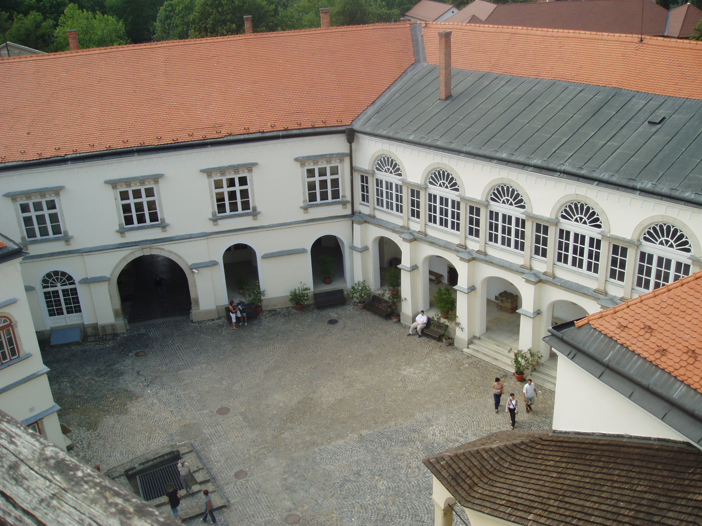 Nyilvános 1137 | 1604 | Sárospatak, Szent Erzsébet utca 19. Rákóczi-vár | A Vörös-torony legfelső szintjéről gyönyörű kilátás nyílik a külső várra, a városra, és az azt körülvevő változatos tájra. De szép lelátás kínálkozik a várkastély tarka tetőire, a várudvarra, az azt övező homlokzatokra és az árkádos loggiára is. A fénykép 2007 augusztusában készült. Felh. irod.: Détsy Mihály: Sárospatak. Bp. Corvina, 1974 Látnivalók Borsod-Abaúj-Zemplén megyében. Miskolc, Well-PRess, 1995 www.sarospatak.hu/nevezetessegek |