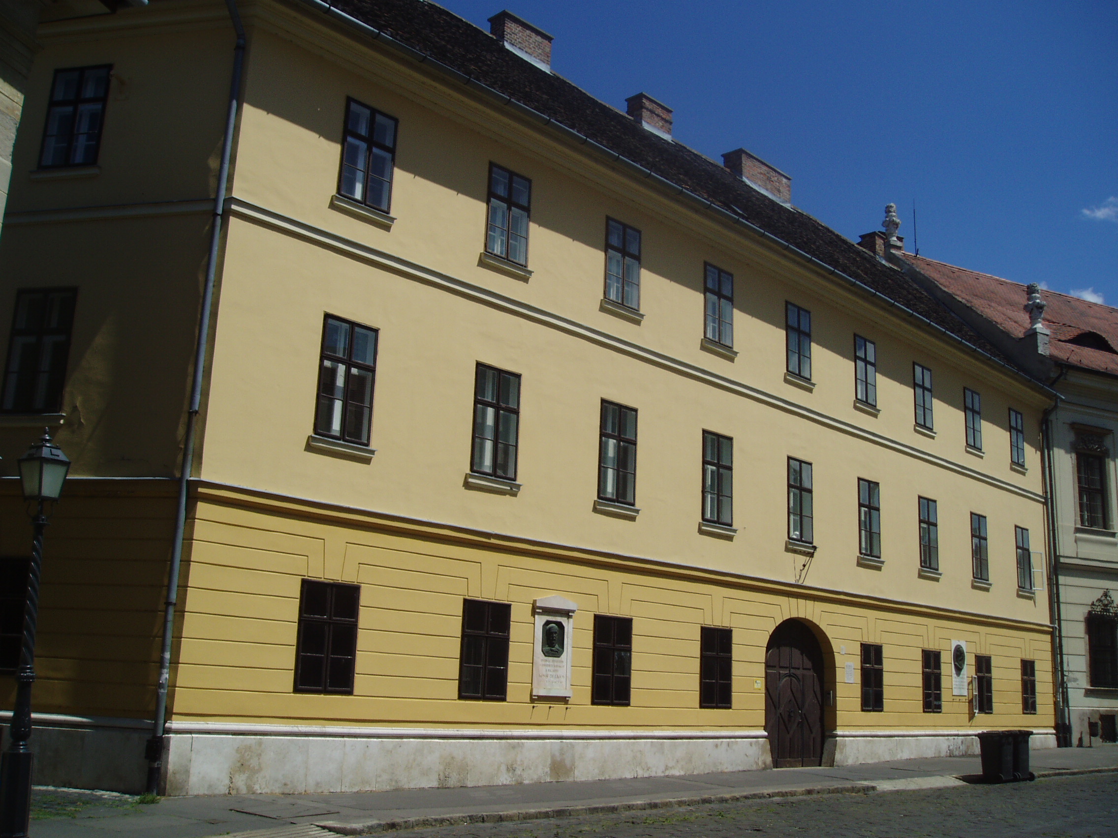 Nyilvános 1217 | 1942 | Budapest I. Táncsics Mihály utca 9. | A volt József Kaszárnyát 1810 körül emelték késő barokk stílusban. Egyes feltételezések szerint körülbelül ezen a helyen volt a XIII-XIV. században a királyi pénzverde és a Nagy Kúria, amely 1301-ben Vencel király otthonául szolgált, 1354-ben pedig Nagy Lajos király városi kúriájaként említik. A kaszárnyaépület udvarán két méter vastag falú emeletes ház áll, valószínűleg 1720 körül építették. Eredetileg puskaporraktár volt, majd a XIX. század elejétől börtönnek használták. A főépületben, az első emeleten raboskodott Kossuth Lajos 1837-től 1840-ig, itt tanult meg angolul. Táncsics Mihály két alkalommal is lakója volt a börtönnek. Először 1848. márc. 4-től 1848. március 15-ig, amikoris Petőfi vezetésével Pest ifjúsága szabadította ki, majd 1860. március 15-től 1867. március 13-ig. Mindkét fogságáról részletesen írt Életpályám c. önéletrajzi művében). Portrédomborműves emléktábláikat Berán Lajos készítette. Itt volt bebörtönözve 1839-től Wesselényi Miklós, akit három évi várfogságra ítéltek. Itt hatalmasodott el szembetegsége, ezért a csehországi grafenbergi gyógyintézetbe internálták. Czuczor Gergelyt 1849. január 18-án Riadó c. verséért tartóztatták le és ide hozták vizsgálati fogságba. Írótársai közbenjárására a börtönben is dolgozhatott az Akadémia megbízásából készülő magyar nyelv szótárán. Buda visszavételekor, 1849. május 21-én a honvédek szabadították ki. Világos után újra bebörtönözték, ekkor Kufsteinben raboskodott. A fénykép 2007 májusában készült. Felh. irod.: Somorjai Ferenc: Budapest. Bp. Medicina, 1996 Erős Zoltán: Magyar irodalmi helynevek A-tól Z-ig. 2. bőv. átd. kiad. Bp. Kis-Lant Kiadó, 1995 |