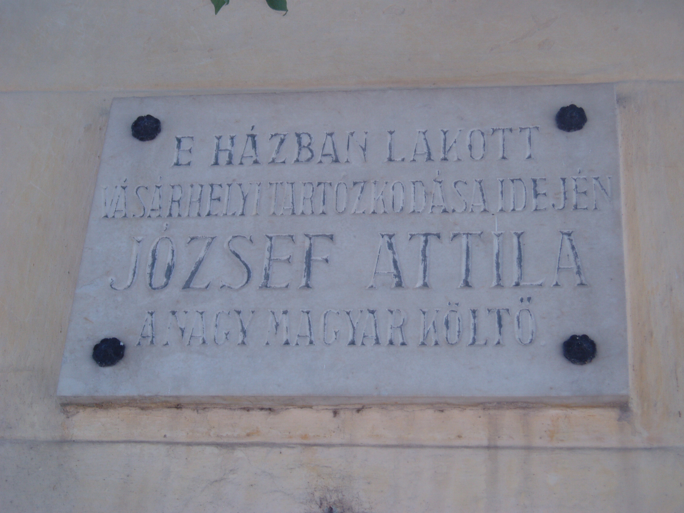 Nyilvános 1196 | 1720 | Hódmezővásárhely, Szántó Kovács János utca 28. | Ebben a házban lakott az 1930-as évek elején Makai Ödön, József Attila gyámja és sógora. Lakásukban többször megfordult a fiatal költő: 1934-ben itt dolgozott válogatott versein, amelyek Medvetánc címen jelentek meg. Makaiék később átköltöztek a város villanegyedébe (lásd: Hódmezővásárhely, Ady u. 4.). Az épületen József Attila és az egykor szintén ebben a házban élt Nagy György ügyvéd, politikus emléktáblája olvasható. A fénykép 2007 júliusában készült. Felh. irod.: Barangolások Csongrád megyében. Miskolc, Well-PRess, 1997 /Vendégváró/ |