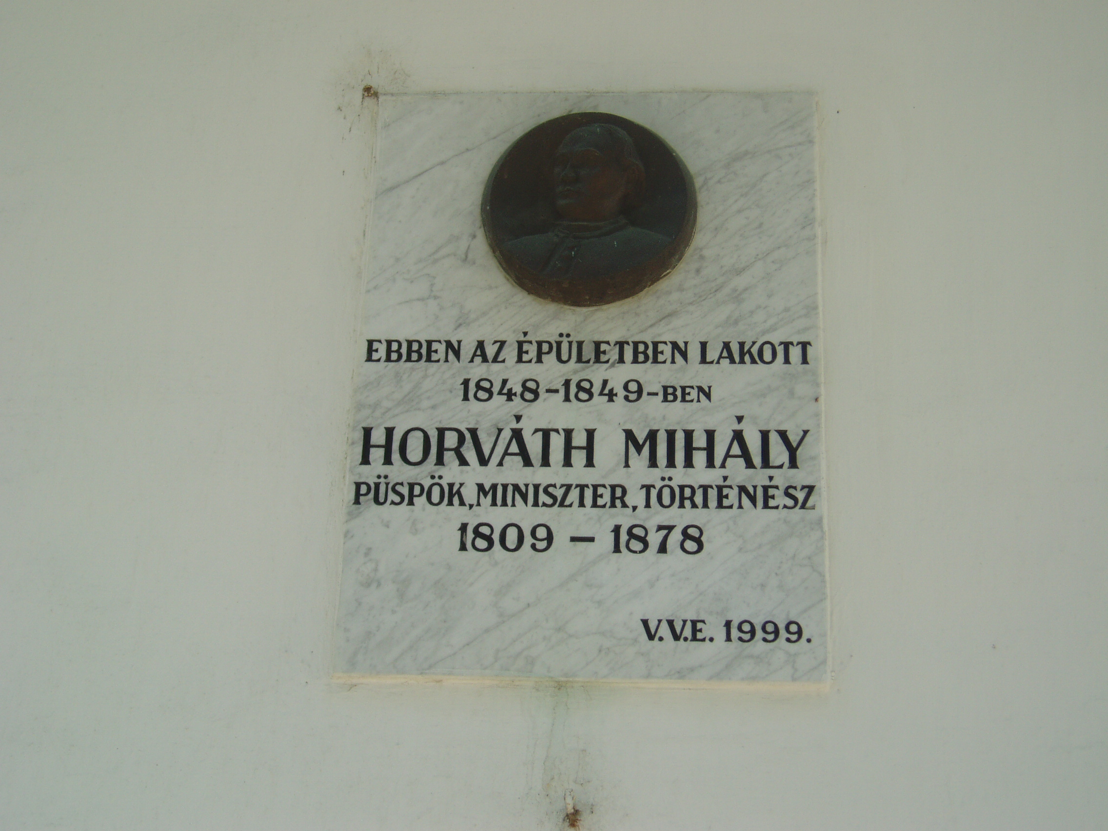Nyilvános 1144 | 1561 | Makó, Csanád vezér tér 12. | A volt püspöki nyaralókastélyt a Temesvárott lakó Kőszeghy László csanádi püspök emeltette 1826-ban a hozzá csatlakozó dór oszlopos kápolnával együtt. A külső homlokzaton jeles, az épülethez kötődő csanádi püspökök, illetve püspöki helynök emléktábláit helyezték el. A képen Horváth Mihály (1809-1878) püspök emléktáblája látható, aki ebben az épületben lakott 1848/49-ben. A fénykép 2007 júliusában készült. Felh. irod.: Barangolások Csongrád megyében. Miskolc, Well-PRess, 1997 |