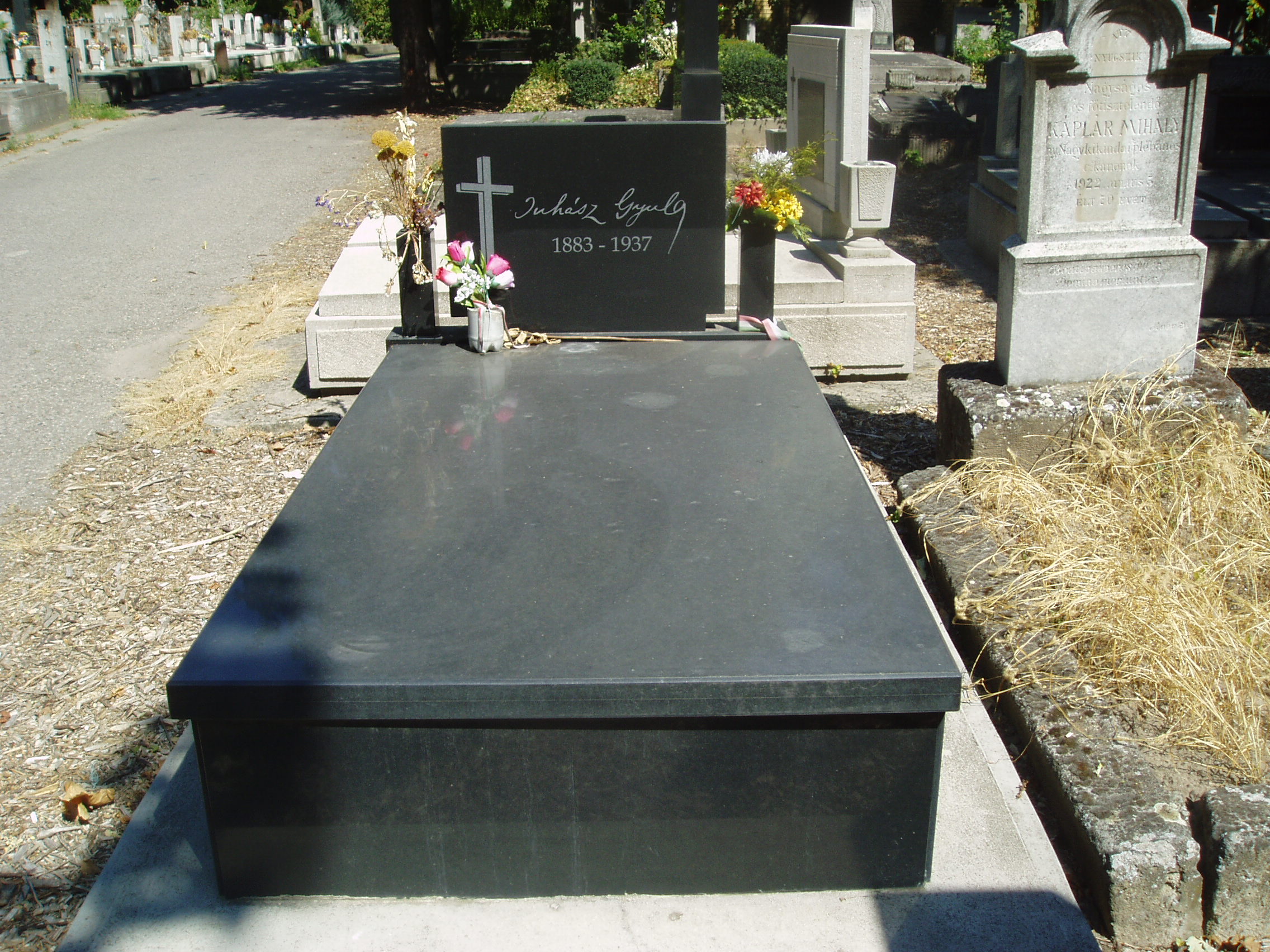 Nyilvános 1170 | 3985 | Szeged, Fonógyári út: Belvárosi temető: Juhász Gyula sírja | A temetőt az 1831. évi kolerajárvány után létesítették. Itt nyugszik az 1937. április 6-án Szegeden (lásd: Szeged, Juhász Gyula utca 4.) elhunyt Juhász Gyula. A fénykép 2007 júliusában készült. Felh. irod.: Péter László: Szeged. Bp. Panoráma, 1981 |
