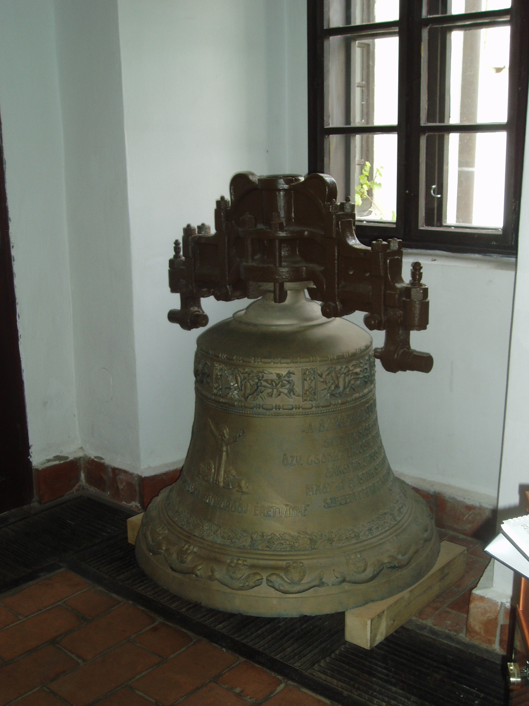 Nyilvános 1150 | 1695 | Szeged, Mátyás tér: Alsóvárosi plébániatemplom | A nagyszerű gótikus templom előterében tekinthető meg a világon egyedülálló "paprikaharang". A harangot 1921-ben szegedi paprikatermesztéssel foglalkozó családok készíttették Szent Piroska tiszteletére a templom háborúba küldött harangjainak pótlására. A fénykép 2007 júliusában készült. |