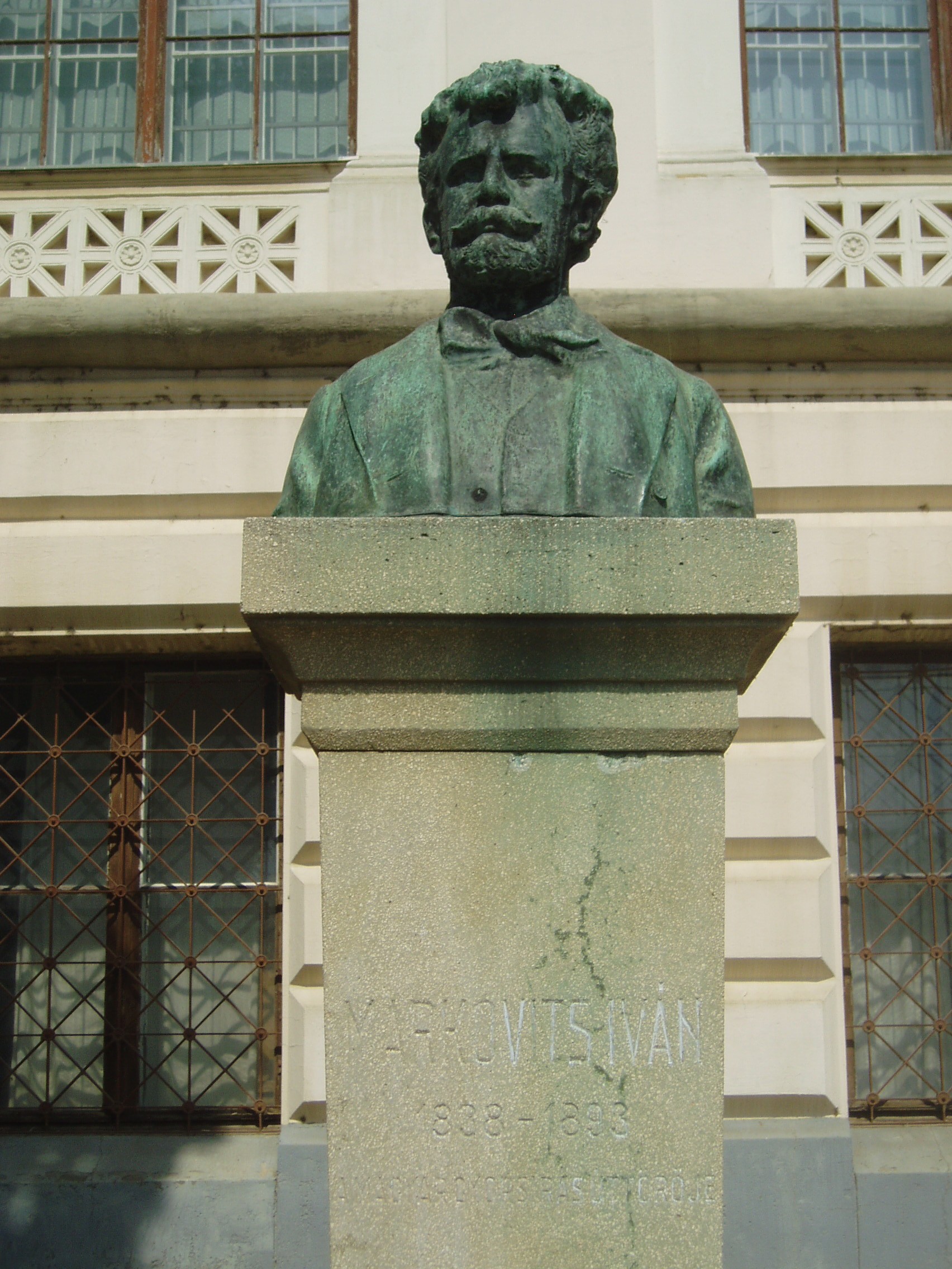 Nyilvános 1072 | 1706 | Szeged, Roosevelt tér: Markovits Iván mellszobra | A Közművelődési palota Tisza felé néző oldalán állították fel Markovits Iván (1838-1893), a hazai gyorsírás atyja mellszobrát, Horváth Géza 1913-ban készült alkotását. A fénykép 2007 júliusában készült. |