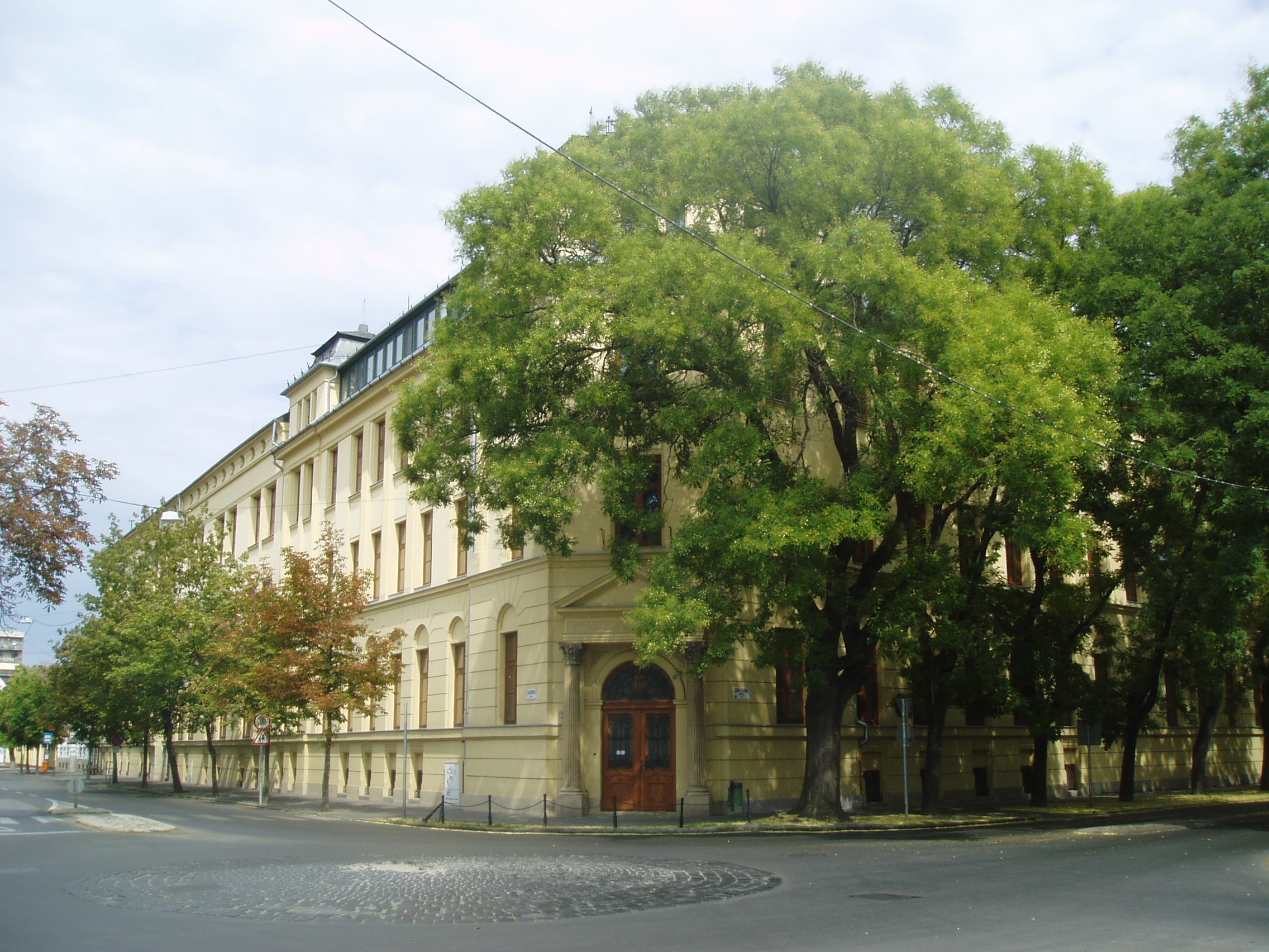 Nyilvános 1199 | 1979 | Szeged, Szentháromság utca 70-76. | Az egyházi Karolina Iskola épületében az elmúlt rendszer idején a Juhász Gyula Tanárképző Főiskola Ének–zene Tanszéke működött. Itt tanított Kardos Pál Liszt–díjas karnagy, aki 1961–1972 között a főiskola leánykarát is vezette. Kardos Pál tanári személyisége, művészi igényessége meghatározóvá vált növendékei és kollégái körében. Emléktábláját 2002. március 22-én avatták fel az épület falán. Az épületen portrédomborműves emléktábla idézi Bálint Sándor néprajztudós (1904–1980), „a legszögedibb szögedi” alakját, aki 1937 és 1941 között az itt működő Iskolanővérek tanítóképzőjének tanára volt. A fénykép 2007 júliusában készült. Felh. irod.: Tizenkét év kőben és ércben. Szeged, Önkormányzat, 2002 |
