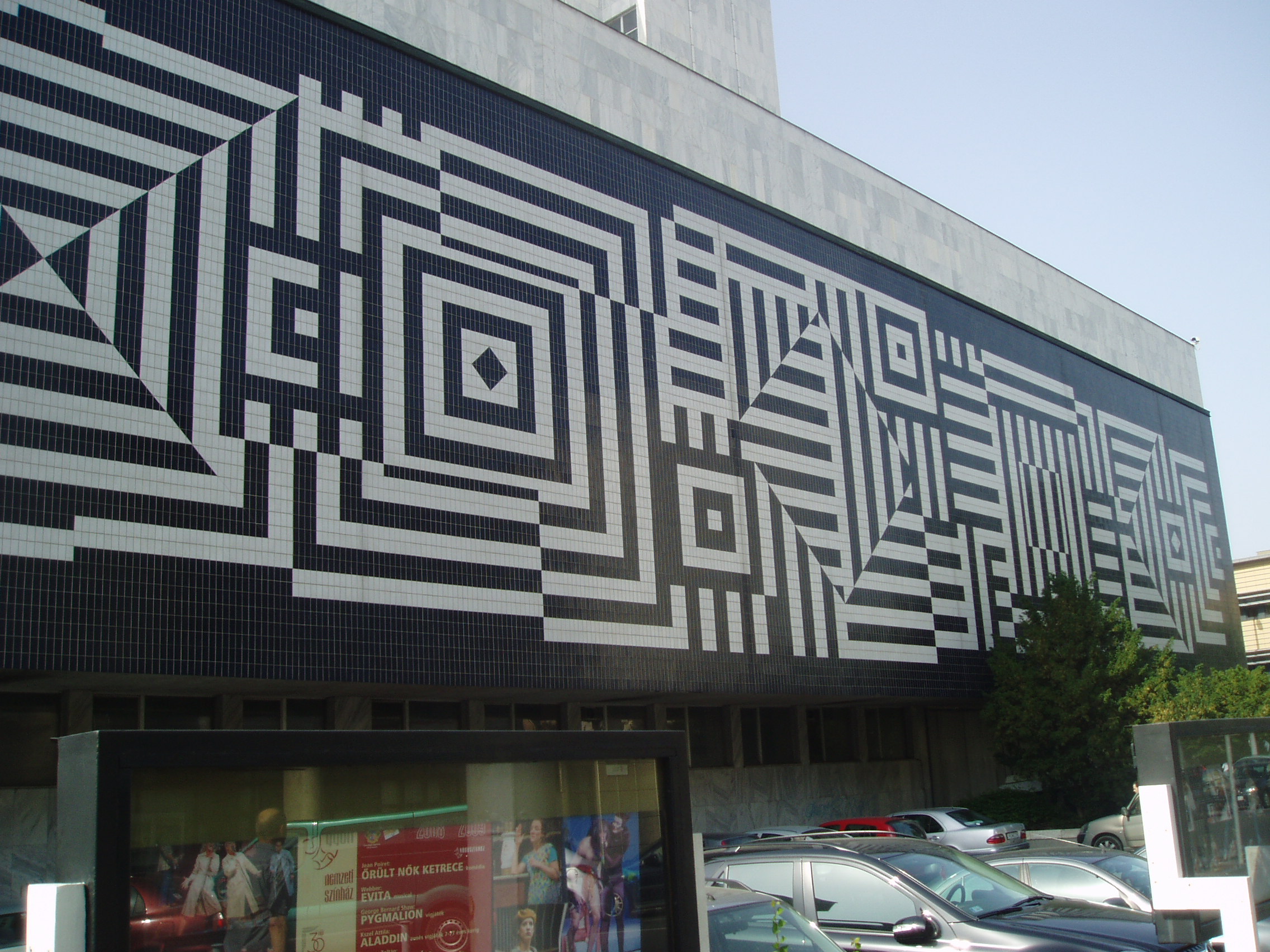 Nyilvános 1165 | 1589 | Győr, Czuczor Gergely utca 7. | Az 1978-ban átadott színházépület az első méltó otthona az 1768 óta többnyire egészen mostoha körülmények között helytálló győri színművészetnek. Terveit a Győri Tervező Vállalat készítette, Vincze Kálmán vezetésével. Látványos külső falburkolatát a magyar származású Victor Vasarely tervei alapján valósították meg. Az épület felavatása után hamarosan, 1979-ben megalakult Markó Iván vezetésével a Győri Balett, amely rövid idő alatt a világ élvonalába került. Vezetője 1991 óta az alapító tagok közé tartozó Kiss János. A felvétel 2008 május végén készült. Felh. irod.: Cziglényi László: Győr. Bp. Panoráma, 1981 www.gyoribalett.hu |