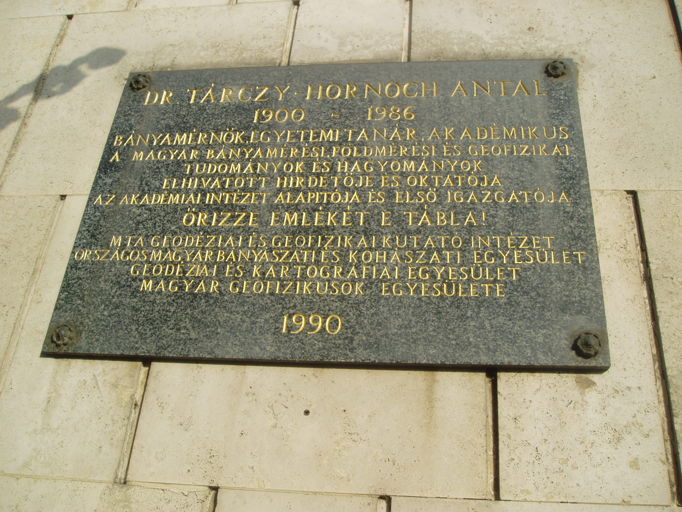Nyilvános 1204 | 1917 | Sopron, Csatkai Endre utca 6-8. | A modern épületben a Magyar Tudományos Akadémia Geodéziai és Geofizikai Kutatóintézete működik. Az itt dolgozó mintegy 35 kutató geodéziai és geofizikai alapkutatásokban vesz részt. Homlokzatán 1990-ben avatták fel dr. Tárczy Hornoch Antal (1900-1986) emléktábláját. A bányamérnök, egyetemi tanár, akadémikus a magyar bányamérési, földmérési és geofizikai tudományok és hagyományok elhivatott hirdetője és oktatója volt. Kezdeményezésére indult meg Sopronban 1949-ben az önálló földmérőmérnök, 1951-ben pedig a geofizikus-mérnök képzés. Mellszobor is őrzi emlékét. A fénykép 2008 júniusában készült. Felh. irod.: http://www.ggki.hu |