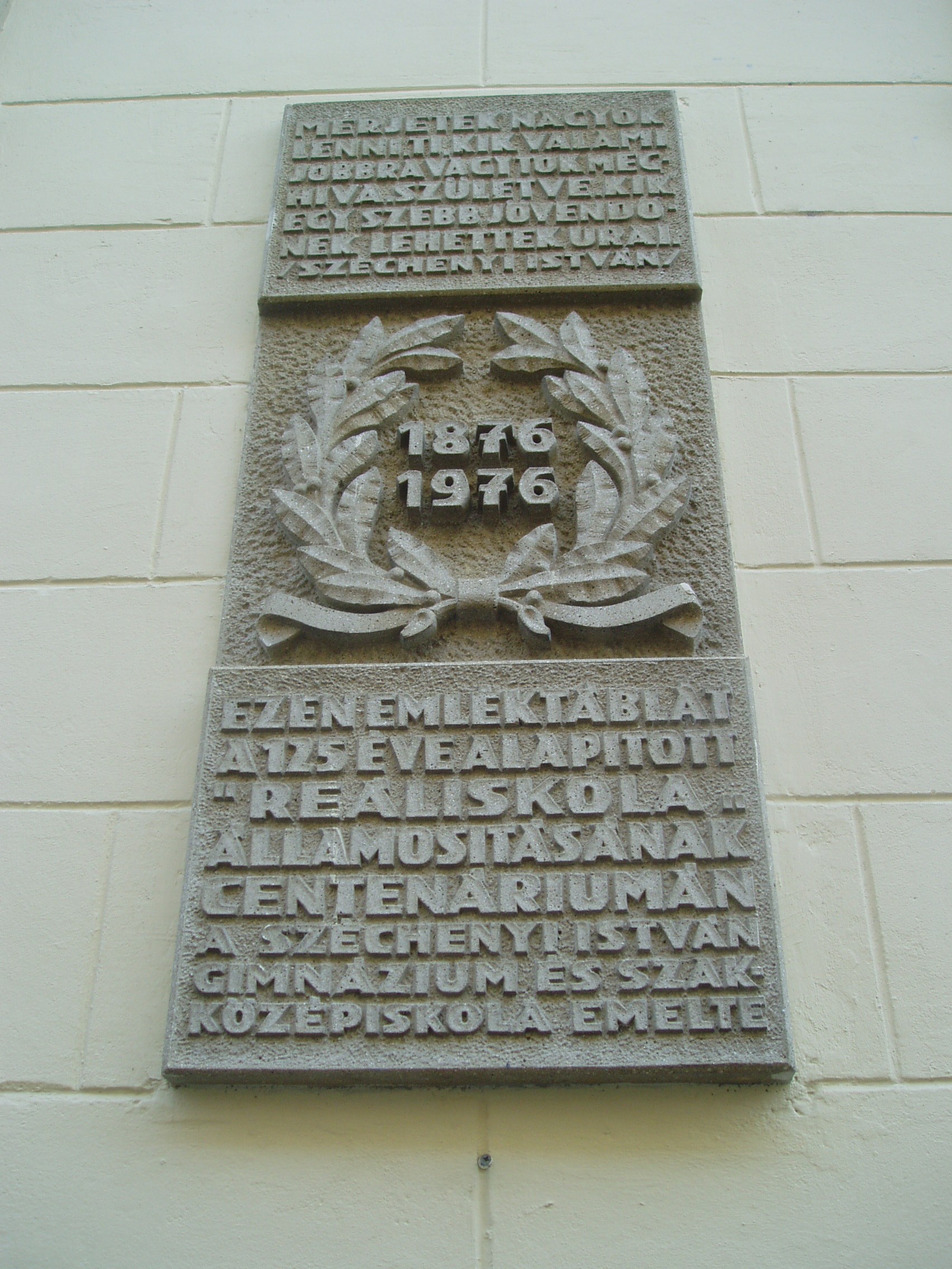 Nyilvános 1150 | 1633 | Sopron, Liszt Ferenc utca 1. | A Széchenyi István Gimnázium eredetileg reáliskola volt, amelyet 1850-ben alapítottak (lásd: Liszt Ferenc utca 2.). A Liszt Ferenc utca sarkán álló épületrészét, amelynek ezen a képen az udvari része látható, 1872-ben építették. Az épület Templom utca felőli oldalán állították a képen látható emléktáblát. Felh. irod.: http://szig.sopron.hu/ |