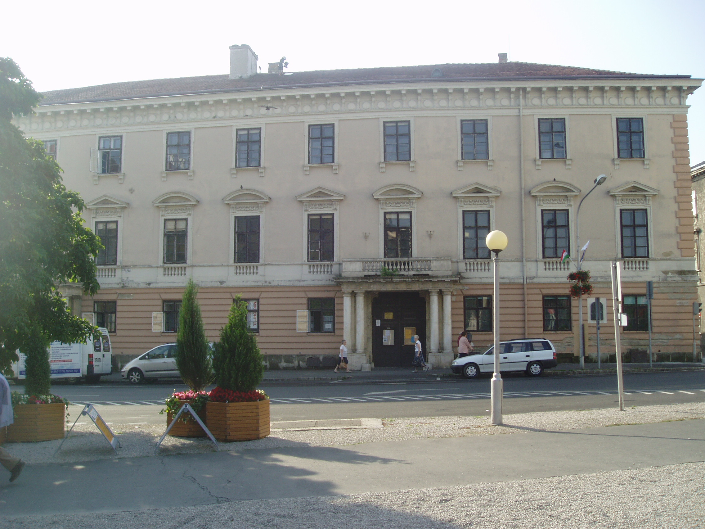 Nyilvános 1091 | 1460 | Sopron, Széchenyi tér 1-2. Széchenyi-palota | A Széchenyi család palotája 1827-ben Hild Vencel tervei alapján épület három barokk ház helyén, amelyek 1765 után kerültek a család birtokába. E régi épületek egyikében őrizte Széchenyi Ferenc annak a gyűjteményének egy részét, amelyet 1802-ben, alapításakor, felajánlott a nemzet múzeumának. A ma itt álló palota végső formáját Széchenyi Pál megbízásából Koch Henrik építőmester alakította ki. A homlokzatán 1933-ban elhelyezett, Haich Erzsébet által készített portrédomborműves emléktábla arról tájékoztat, hogy itt töltötte gyermekéveit a legnagyobb magyar, Széchenyi István. A kép 2008 júniusában készült. Felh. irod.: Czellár Katalin: Sopron. 3. jav. kiad. Bp. Panoráma, 2000 |