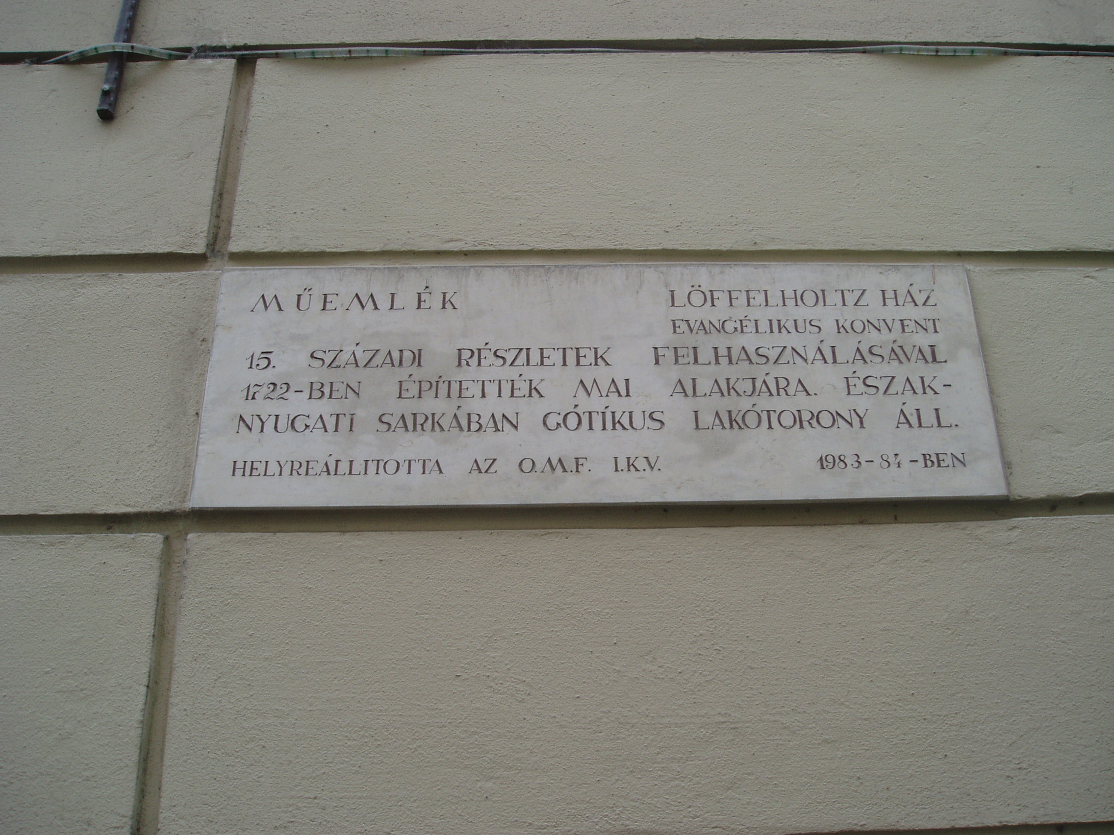 Nyilvános 1119 | 1480 | Sopron, Szent György utca 14. Evangélikus konventház. | A középkori eredetű egyemeletes barokk lakóház jelenlegi külsejét a XVIII. század első negyedének vége felé kapta. Ez volt a soproni evangélikus gyülekezet ún. Gemein–Haus épülete, azaz a konventház. Eredetileg a szomszéd házat (lásd: Sopron, Szent György utca 12.) is birtokló Eggenberg hercegné tulajdona volt, aki halálakor az evangélikus egyházra hagyta, amely később azt Löffelholtz bárónénak adta el. A báróné, aki Jókai Mór regényében, A lőcsei fehér asszonyban játszik szerepet, az ingatlant ismét az evangélikus konventre hagyományozta. Udvarában gótikus torony áll. Ebben a házban lakott Wohlmuth János (1643–1724) zeneszerző és orgonaművész. Valószínűleg ő volt a zenetanára Stark Jánosnak, egy helybeli fogadós (lásd: Sopron, Várkerület 55.) fiának. A feltételezések szerint a ma Stark–féle virginálkönyvként számon tartott kézirat táncait és egyéb kisebb darabjait Wohlmuth kottázta le a Stark–fiú számára, mintegy hangszeriskolaként. A katolikus főúr, Esterházy Pál nádor — maga is kiváló muzsikus, a Harmonia Caelestis szerzője — is rá, az evangélikus orgonistára bízta fiai hangszeres tanítását. A kép 2003-ban készült. Felh. irod.: Czellár Katalin: Sopron. 3. jav. kiad. Bp. Panoráma, 2000 Bárdos Kornél: Sopron zenéje a 16–18. században. Bp. Akadémiai Kiadó, 1984 Payr Sándor: Wohlmuth János. = Sopronvármegye, 1929. I–II |