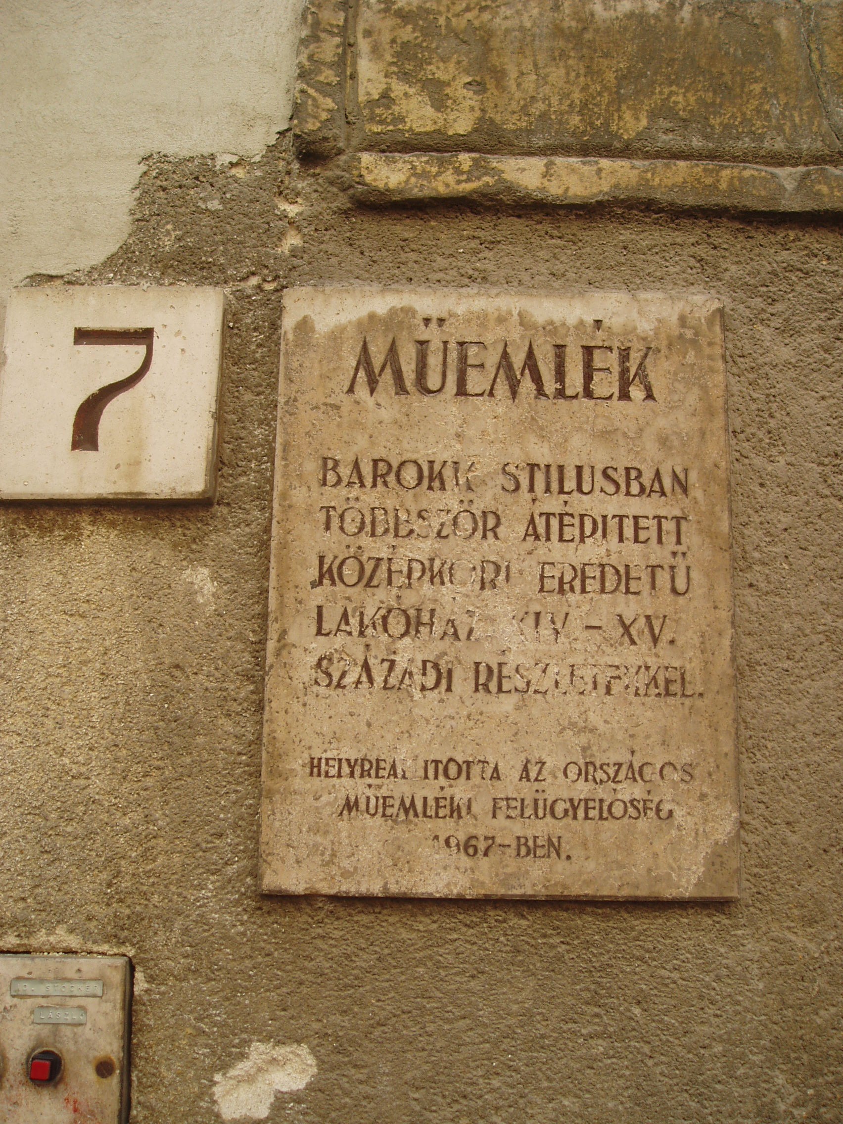 Nyilvános 1118 | 1404 | Sopron, Új utca 7. | A XVIII. században barokk stílusban átépített középkori eredetű lakóház. Emeletén egy gótikus karéjos ablak maradványai láthatók. A kép 2008 júniusában készült. Felh. irod.: Czellár Katalin: Sopron. 3. jav. kiad. Bp. Panoráma, 2000 |