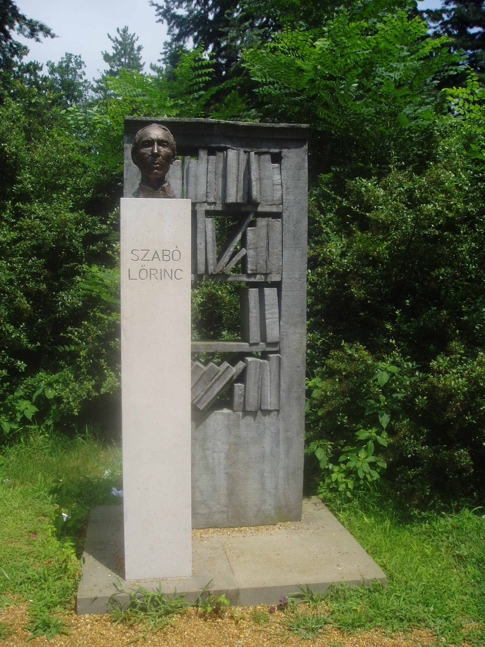 Nyilvános 1238 | 3357 | Debrecen, Medgyessy sétány: Szabó Lőrinc szobra | A debreceni Nagyerdő területén a városhoz kötődő jeles személyiségek szobrai állnak. Szabó Lőrinc szobra Schaár Erzsébet alkotása. A fénykép 2006 júniusában készült. |