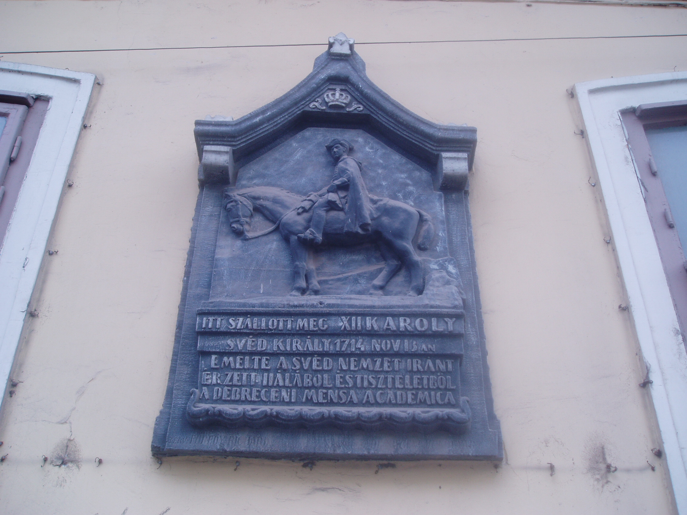 Nyilvános 1203 | 1656 | Debrecen, Széchenyi utca 6. | Debrecen legrégibb fennmaradt lakóháza az 1690-es években emelt patríciusház. A 17. század végén már Diószegi Sámuelé, a város főbírájáé, s első postamesteréé is volt. A ház így fogadóként is szolgált. Legnevezetesebb vendége XII. Károly svéd király volt, aki itt szállt meg 1714. november 16-án, amikor Törökországból hazafelé tartott az I. Péter orosz cártól elszenvedett vereség után. Az egykorú források megőrizték, hogy a király, aki nemcsak híres hadvezér és államférfi volt a maga korában, hanem felvilágosult gondolkodó is, igazi lelki gyönyörűséget talált a debreceni főbíró házánál, ahol a kollégium professzoraival, a nagy műveltségű, világot járt házigazdával és más olvasott férfiakkal találkozott. A továbbutazó király elégedetten jegyezte fel, hogy itt, a távoli magyar városban igen jól felszerelt és gazdag könyvtár állt rendelkezésére esti olvasás céljából. Felh. irod.: Papp Antal: Debrecen. Bp. Panoráma, 1976 www.debrecen.hu |