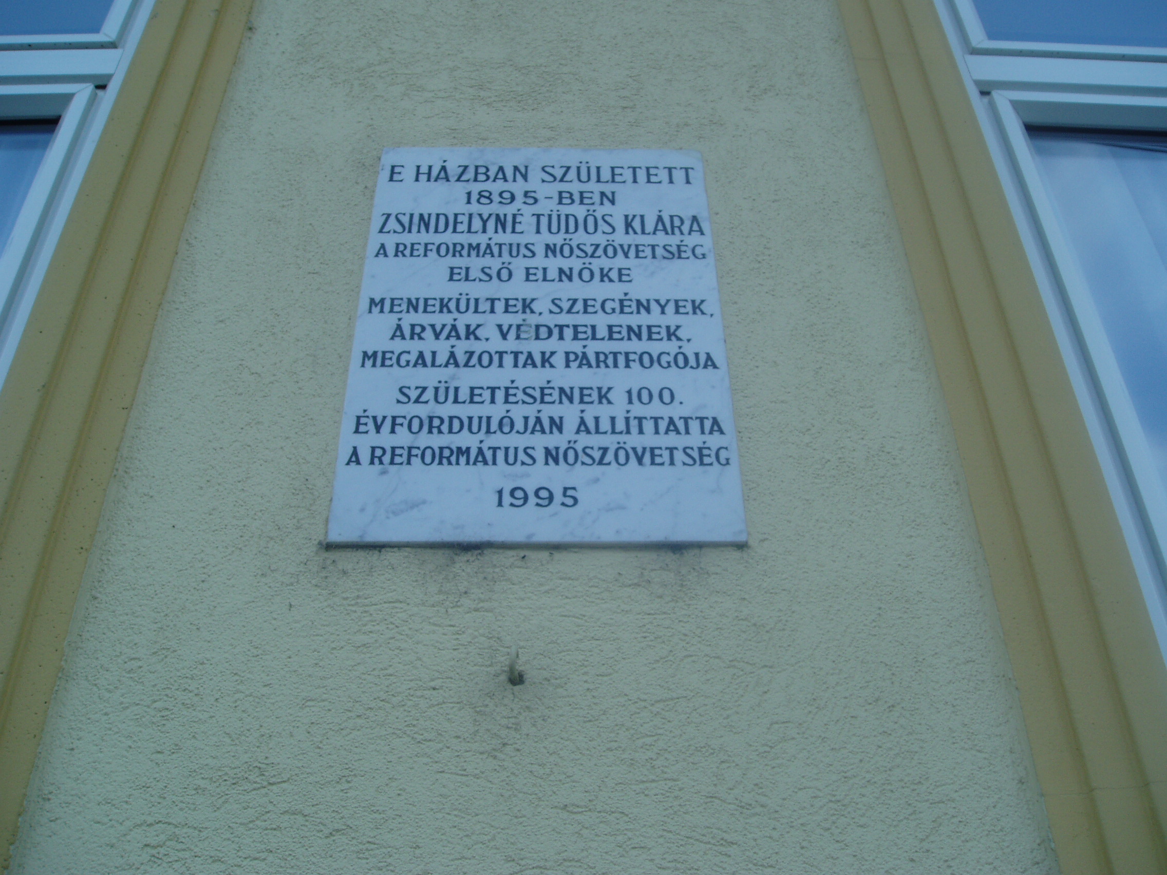 Nyilvános 1192 | 1779 | Debrecen, Péterfia utca 30. | Ebben a házban született Zsindelyné Tüdős Klára (Debrecen, 1895. július 20. – Bp., 1980. április 16.): jelmeztervező, népművészeti kutató. Iparművészeti és néprajzi tanulmányok után 1925-ben került az Operaházhoz, a jelmezműhely vezetője és jelmeztervezője volt. Ő tervezte Kodály Zoltán Háry Jánosa 1926-os ősbemutatójának jelmezeit. Az 1930-as években a Belvárosban divatszalont nyitott, ahol tervezésében divatba hozta a paraszthímzéssel, szőttesekkel díszített ruhákat. 1944-ben az Országos Református Nőszövetség elnöke lett. Megalapította a szövetség lapját, a Magyar Asszonyt. A II. világháború idején a svéd misszióval együtt számos üldözöttnek adott menedéket. 1952-ben férjével együtt kitelepítették. 1963-ig éltek Balatonlellén egy nyaraló házmestereként. A fénykép 2006 júniusában készült. Felh. irod.: Magyar életrajzi lexikon |