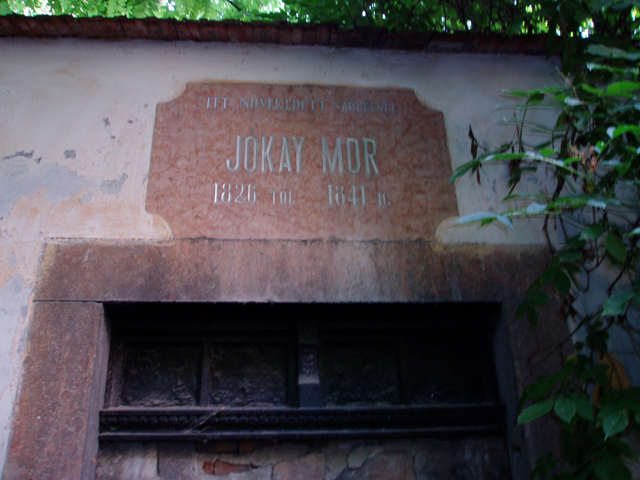 Nyilvános 1625 | 3635 | Komárom (Komárno), Határőr utca 1. | A mostani lakóház helyén állt egykor az a földszintes épület, amelyben 1826-tól 1841-ig Jókai Mór nevelkedett. Pápai és kecskeméti diákévei után ismét ide tért vissza 1844 nyarán, amikor joggyakornok lett Komárom népszerű ügyvédjénél, Asztalos Istvánnál. A családi otthonban fejezte be 1844 karácsonya körül a még Kecskeméten elkezdett első, - s egyetlen Komáromban írt regényének, a "Hétköznapok"-nak a kéziratát. Ebben az időben, a téli esték vidám társas összejövetelein szövődött első szerelmi regénye is Asztalos Etelkával, principálisa lányával. Jókai 1845 tavaszán Pestre költözött, hogy ott készüljön fel az ügyvédi vizsgára, s ettől kezdve csak látogatóban fordult meg a családi házban. Egy alkalommal magával hozta ide barátját, Petőfi Sándort is. A családi házat az író bátyja, Károly örökölte, aki falára emléktáblát készíttetett a következő szöveggel: "Itt növekedett szüleinél Jókay Mór 1826-tól 1841-ig" (az író vezetéknevét eredeti formában tüntette fel). A házat Jókay Károlytól leánya, Etelka, Ihász Lajosné örökölte. Ihászék építették 1897-ben a család eredeti háza helyén a ma is látható bérházat. Ha az utazónak szerencséje van, s nyitva van a bérház kapuja, feltétlenül menjen be az udvarba, ahol egy falba beépítették az eredeti ajtókeretet s fölötte a Jókay Károly által állított emléktáblát. Sőt, megmaradt és az udvarban látható az eredeti Jókay-ház két oszlopa is, amelyek arról nevezetesek, hogy Jókay Eszter (az író nővére) visszaemlékezése szerint a kisiskolás Móric, ha valamit szó szerint kellett bemagolni, akkor azt úgy ismételgette, hogy közben valamelyik oszlop körül keringett... A fénykép 2005. júliusában készült. Felh. irod.: Mácza Mihály: Komárom nevezetességei. Pozsony, Madách-Posonium, 2002 |