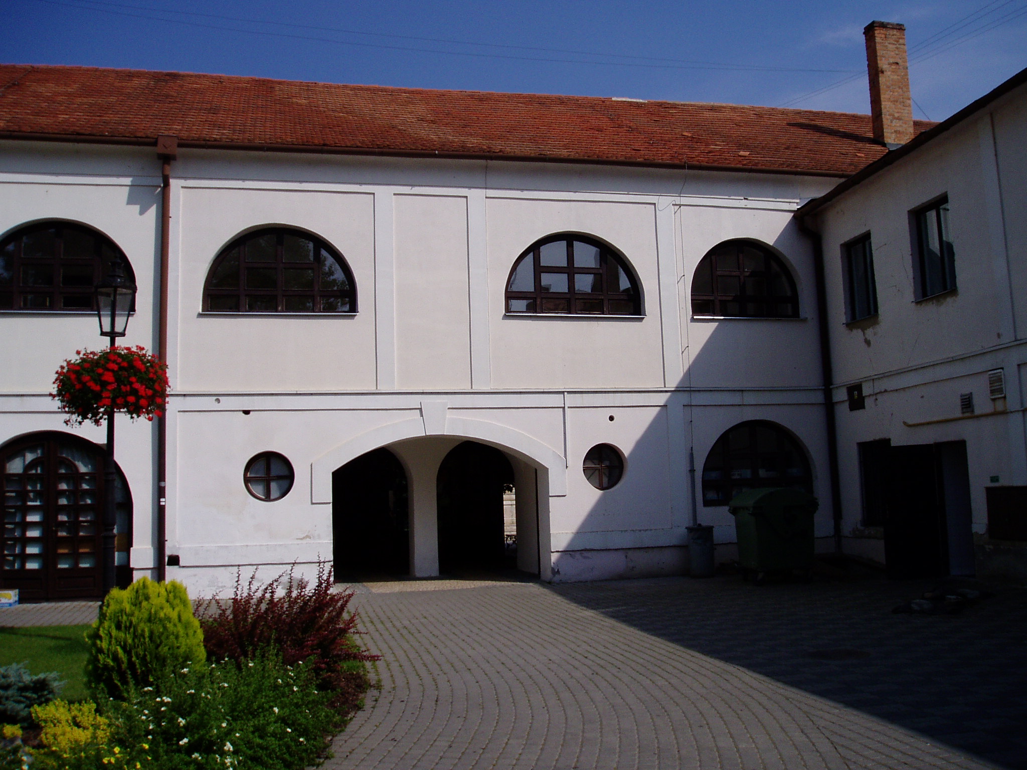 Nyilvános 1261 | 2345 | Komárom (Komárno). Klapka tér 9. Zichy-palota (udvari homlokzat) | A Klapka tér legnagyobb épülete a volt Zichy–palota. Zichy Miklós gróf, szabolcsi főispán építtette a XVII. század második felében. Eredetileg barokk stílusú volt, de miután a 1763-as nagy komáromi földrengés romba döntötte, klasszicista stílusban épült újjá, két épületszárnnyal bővülve. Udvarának végén az 1800-as évek elejétől 1827-ig emeletes épület állt, ennek emeleti részén tartották a táncmulatságokat és a színházi előadásokat. Az első hivatásos magyar színtársulat Komáromban Benke József és Kemény János vezetésével lépett fel 1811 májusában (ők a második pesti színtársulatból váltak ki). A társulatban ott volt Balogh István, Déry István, Láng Ádám, Murányi Zsigmond, Murányiné Lefèvre Teréz és a pályája legelején levő, tizennyolc éves Scheckenbach (Schenbach) Róza, aki később Déryné Széppataki Róza néven vált a magyar játékszín történetének állócsillagává. Legközelebb Balogh István székesfehérvári társulata jutott el Komáromba, valamikor 1813 és 1815 között. Szinnyei József szerint ennek a társulatnak Katona József is tagja volt, s Idegen művésznéven fellépett itt a Hamlet címszerepében és saját, Luca széke című darabjában. 1819 októberében Kilényi Dávid kecskeméti társulata érkezett a városba. Előadásaikról Ásvay Jókay József, Jókai Mór édesapja tudósított a helyi sajtóban. A közelmúltban a Zichy–palota udvarán építették ki az ún. Európa udvart. A helyi viszonylatban gigantikus méretű vállalkozás célja, hogy élőben mutassa be harmincöt európai ország építészetét. A városrész egyben Komárom új szolgáltató központja is, üzletekkel, éttermekkel, kávézókkal, valamint egy föld alatti bevásárlóközponttal. A palota első emeletén (bejárat a Szentháromság–szobor melletti kapun) a város két híres szülötte, Jókai Mór és Lehár Ferenc emlékkiállítása látható. Különösen a Jókai-kiállítás gazdag eredeti relikviákban. A fénykép 2005. júliusában készült. Felh.irod.: www.komarno.sk Mácza Mihály: Komárom nevezetességei. Pozsony, Madách-Posonium, 2002 Szénássy Zoltán: Rév–Komárom. KT Kiadó, 1998 Tóth László: "...miként hajdan az apostolok" : a komáromi magyar színjátszás története. Dunaszerdahely, Lilium Aurum, 1997 |