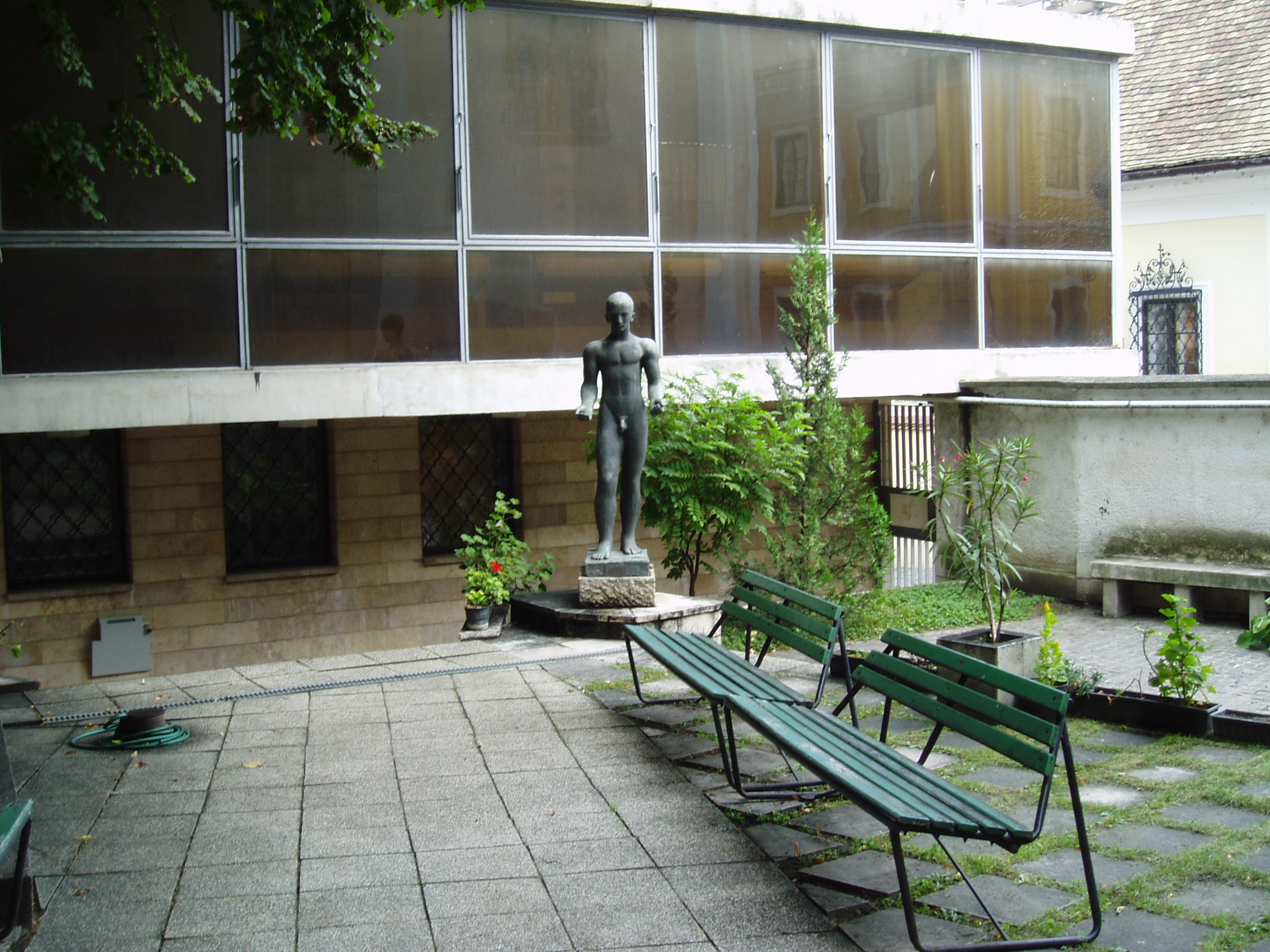 Nyilvános 1321 | 2404 | Szentendre, Fő tér 6. Ferenczy Károly Múzeum | A Ferenczy Károly Múzeum az egykori ortodox szerb iskola copf stílusú, 1793-ból származó, Oesner Antal József tervezte épületében kapott helyet. A fényképen látható udvar felőli, modern szárnya 1972-ben, Cifka Anna tervei alapján készült. Az 1951-ben alapított múzeum az imresszionizmus egyik legnagyobb magyar mesteréről, Ferenczy Károly (1862-1917) festőművészről kapta a nevét, aki 1889-92-ben Szentendrén élt és alkotott. Gyermekei közül az ikertestvérek: Noémi, a gobelinművész és Béni, a szobrász 1890-ben itt születtek (lásd: Szentendre, Alkotmány u. 1.). A múzeum állandó kiállításon a Ferenczy művészcsalád alkotásai láthatók (Ferenczy Károlyné Fialka Olga is jeles festőművész volt). De gazdag a gyűjtemény más szentendrei művészek munkáit őrzőt képzőművészeti alkotásokban, elsősorban római kori régészeti leletekben, valamint helytörténeti és a környék hagyományait bemutató néprajzi tárgyakban, dokumentumokban is. A fénykép 2005 szeptemberében készült. Felh. irod.: http://pmmi.hu/muzeumok/ferenczy/index.htm Szentendre. Szerk. Sándyné Wolf Katalin. Szentendre, 1985 www.vendegvaro.hu |