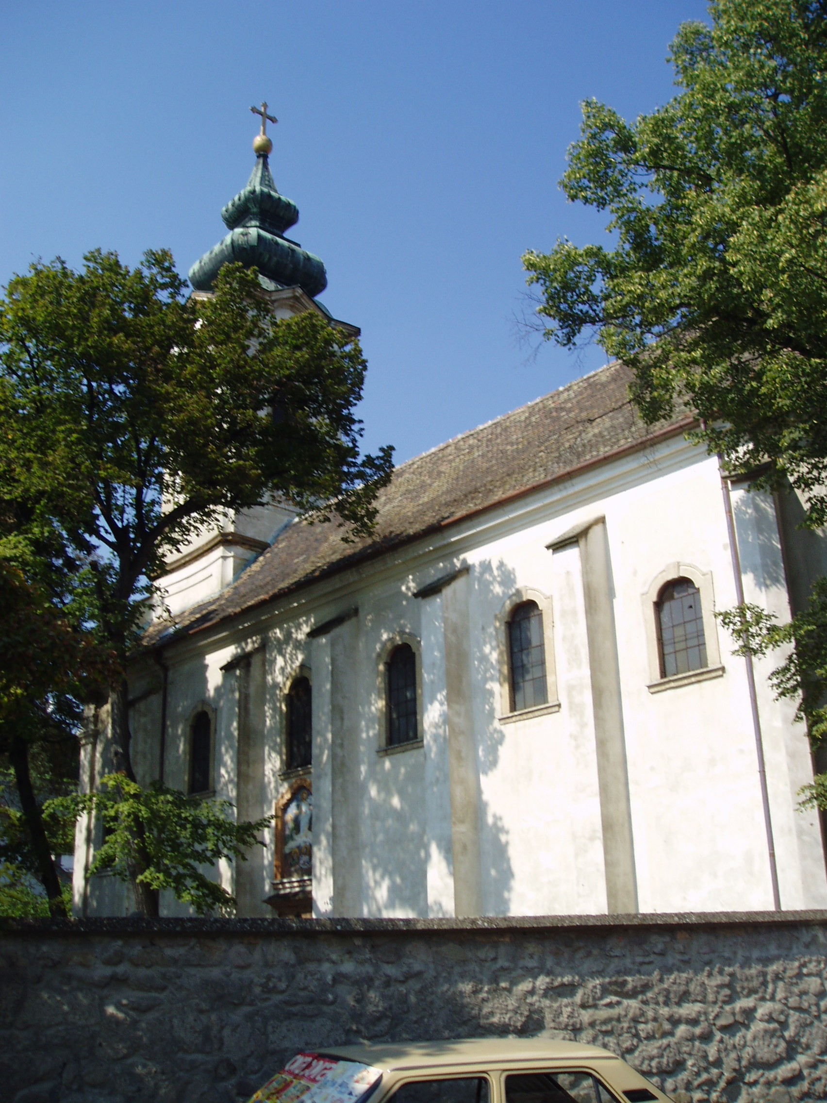 Nyilvános 1227 | 2150 | Szentendre, Vujicsics tér: Preobrazsenszka-templom | A középtornyos, barokk Preobrazsenszka-templomot a Boszniából érkezett szerbek építették 1741-1746 között. Klasszicizáló díszítőelemei valószínűleg 1770 után - egy nagyobb felújítás és átalakítás révén - készültek. Toronnyal 1852-ben koronázták meg az épületet. A templomot vastag kőkerítés veszi körül. A kerítésfal korinthoszi oszlopokkal szegélyezett, díszes, kovácsoltvas kapuját a pesti szerb temploméról mintázták, 1803 és 1806 között Olhauser József helybéli lakatosmester készítette. A templom az ortodox (görögkeleti) egyházi műemlékek között kiemelkedő helyet foglal el. Belsejében nagyrészt megmaradt a XVIII. század második felében és a XIX. század elején készült berendezés. Jelentős képzőművészeti érték a templom ikonosztáza, amely a legszebb hazai ikonfalak egyike, az első orosz-ukrán típus szerint épült képfal. A templom körül augusztus 19-én tartják Szentendre legnevezetesebb szerb búcsúját, amellyel Jézus Tábor-hegyi színeváltozásáról emlékeznek meg. Ezeken búcsúkon rendszeresen megjelent és muzsikált Vujicsics Tihamér, aki 1979-ben - Damaszkusz felé tartva - repülőszerencsétlenség áldozata lett. A szerencsétlenség éppen augusztus 19-én vetett véget a szerb származású zeneszerző életének. Rá emlékezve nevezték el róla 2000-ben a templom terét és állították fel emlékkútját (lásd: következő kép). A fénykép 2005 szeptemberében készült. Felh. irod.: Szentendre. Szerk. Sándyné Wolf Katalin. Bp. Panoráma, 1985 www.templom.hu www.vendegvaro.hu |