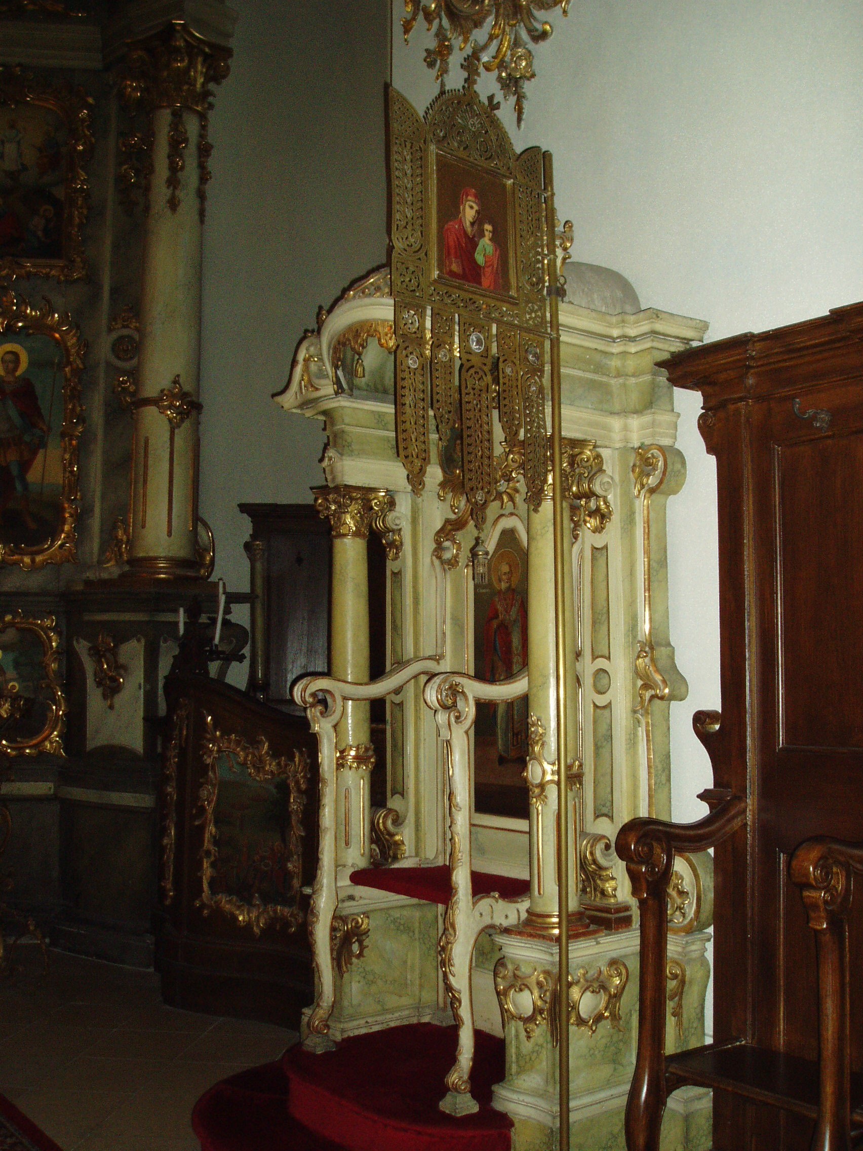 Nyilvános 1187 | 1817 | Szentendre, Pátriárka utca: Beográda-templom | A görögkeleti (ortodox) püspöki székesegyház, a Beográda vagy Belgrád-templom az ortodox egyházi élet központja. Helyén egykoron középkori templom állt, majd a XVII. században az ottani politikai helyzet miatt Belgrádból idetelepülők kőből építettek itt templomot. A mai, barokk stílusú katedrális 1756-1764 között készült. A körülzárt kertbe - amelyben a templom és mellette a püspöki palota áll - finom mívű kovácsoltvas díszkapun át juthatunk be. A templom főbejárata mellett áll az a kis épület, melyben a szájhagyomány szerint III. Arsenije pátriárka lakott, ezért azt ma is pátriárkai épületnek nevezik. A székesegyház főhomlokzatában kiemelkedő szerepet kap a 48 méter magas harangtorony; ez Szentendre legmagasabb templomtornya. A templombelső nagy művészettörténeti értéke a nagyméretű ikonosztáz (Ösztovics Vazul szerémségi festőművész készítette 1777/81-ben), az aranyozott, hársfából faragott szószék, valamint a baldachinos püspöki trón. A fénykép 2005 szeptemberében készült. Felh. irod.: Szentendre. Szerk. Sándyné Wolf Katalin. Bp. Panoráma, 1985 www.templom.hu www.vendegvaro.hu |