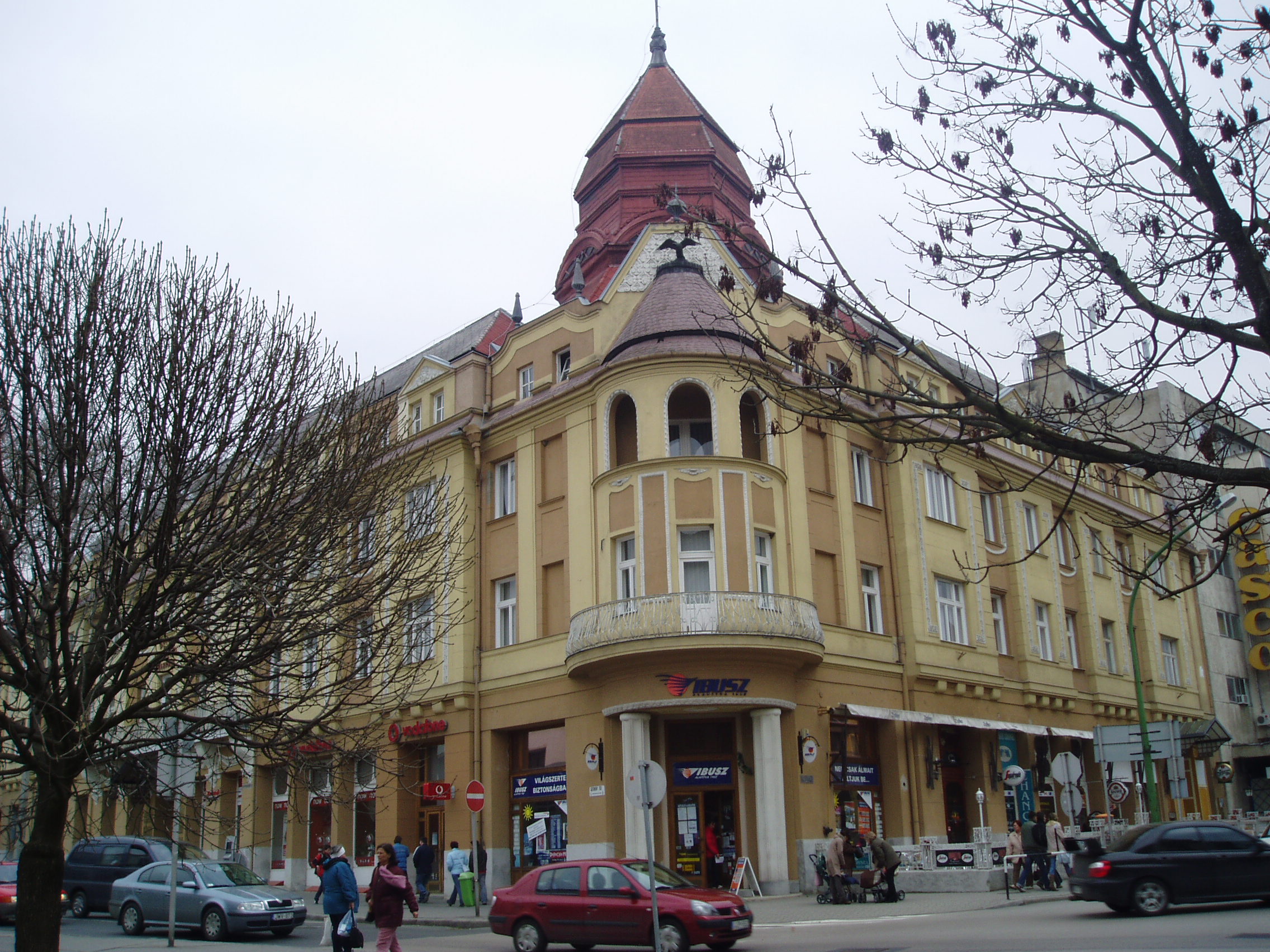 Nyilvános 1313 | 3488 | Széchenyi tér 5. Dorottya üzletház | A sétálóutca (Fő utca) végén az 1980-as években alakították ki a Széchenyi Istvánról elnevezett teret. Itt áll a Dorottya Üzletház szecessziós palotája, amelyet 1911-ben emeltek Baumöhl Leó tervei alapján. Eredetileg szálloda volt, amely a Turul nevet viselte. Sarki bejárata felett ma is látható a turulmadár. A szállodában annakidején több nevezetes személyiség is megszállt: Kodály Zoltán, Móricz Zsigmond, Áprily Lajos, Kassák Lajos és mások. A kaposvári villájában (lásd: Kaposvár, Róma–hegy) élő Rippl–Rónai József festőművész gyakran hallgatta itt kedves cigányprímása, Szimplicisszimusz (Barcza József) muzsikáját. Az első világháború éveiben, amikor a nem sokkal korábban megnyílt színház (lásd: Kaposvár, Rákóczi tér 1.) épületében vöröskeresztes kórház működött, itt is tartottak színházi előadásokat. Az épületben ma a Dorottya Üzletház működik. Farsang idején háromszáz fő befogadására alkalmas dísztermében rendezik az immár hagyományos Dorottya–bált. A fénykép 2006 márciusában készült. Felh. irod.: Kaposvár és környéke. Kaposvár, Infomark, 2002 |
