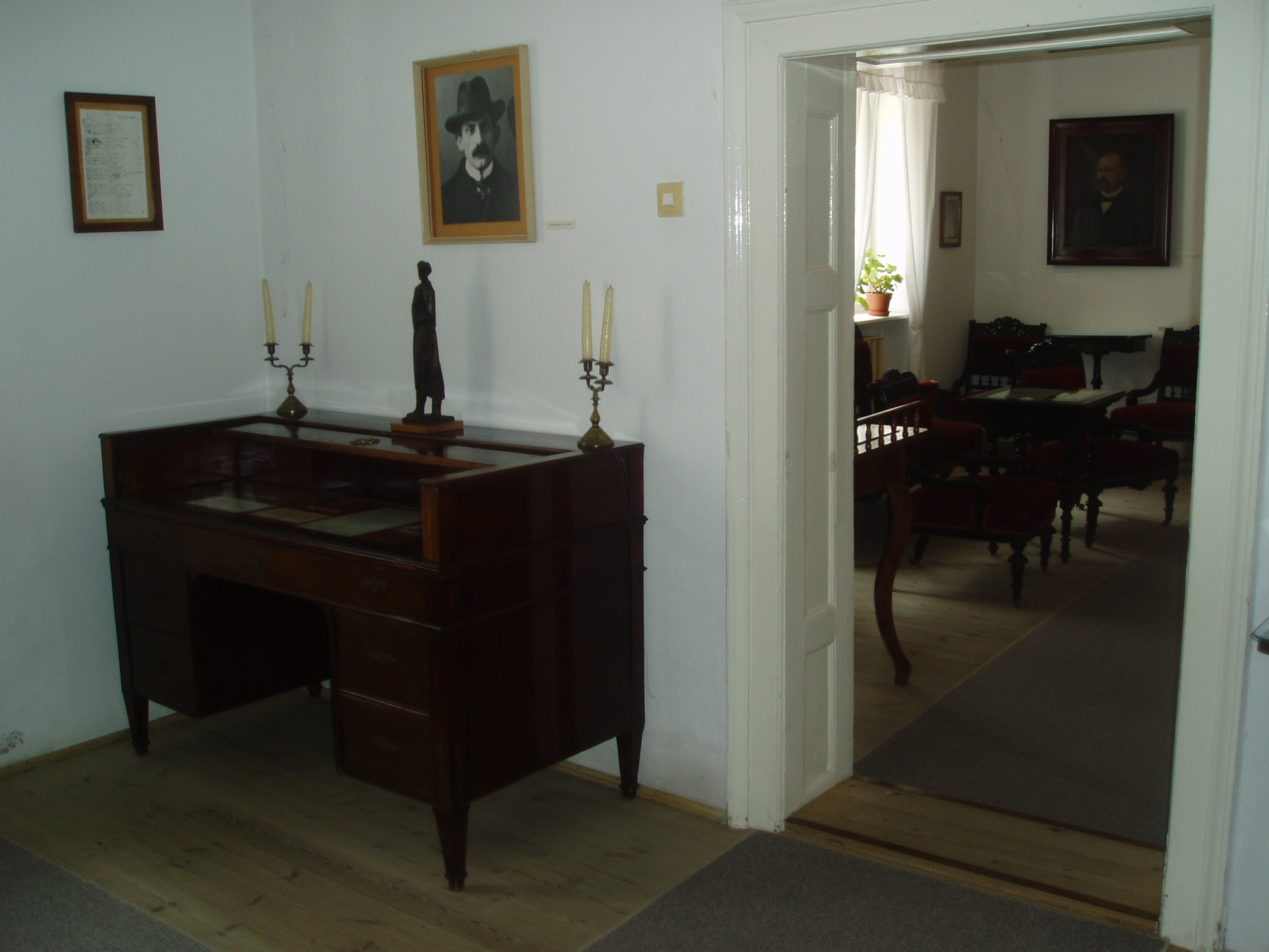 Nyilvános 1634 | 3601 | Szekszárd, Babits Mihály utca 13. Babits Mihály Emlékház | Babits Mihály egyemeletes, copf stílusú szülőháza a XIX. század elején (egyes források szerint 1780 körül) épült az akkor a város védőszentjéről Szt. Lászlónak nevezett utcában. A költő anyai nagyapja 1852-ben, szekszárdi letelepedésekor vásárolta meg. Itt született a költő 1883. november 26-án, s sokat tartózkodott és alkotott ezen a helyen. 1967-ben rendezték meg a házban az első emlékkiállítást, amelyet 1983-ban, a költő születésének centenáriumán újjáalakítottak, s az egész épületet emlékháznak rendezték be. A költő relikviái, a család bútorai, használati tárgyai és dokumentumai mellett láthatók Farkas Pál, Rippl-Rónai József, Glatz Oszkár és Beck Ö. Fülöp Babitsot ábrázoló képzőművészeti alkotásai is. Babits Mihály számos verse itt született, és itt játszódik a Halálfiai című regény több fejezete is. Az épület udvarán 1981-ben avatták fel Babits Mihály szobrát, Farkas Pál alkotását. Babits szülőházában állandó kiállítás idézi a szintén szekszárdi születésű Dienes Valéria filozófus és Baka István költő, író emlékét. A fénykép 2006 júliusában készült. Felh. irod.: www.szekszard.hu www.museum.hu Töttős Gábor: Babits bölcsői körül. = Tolna Megyei Levéltári Füzetek 6. Szekszárd, 1977 |