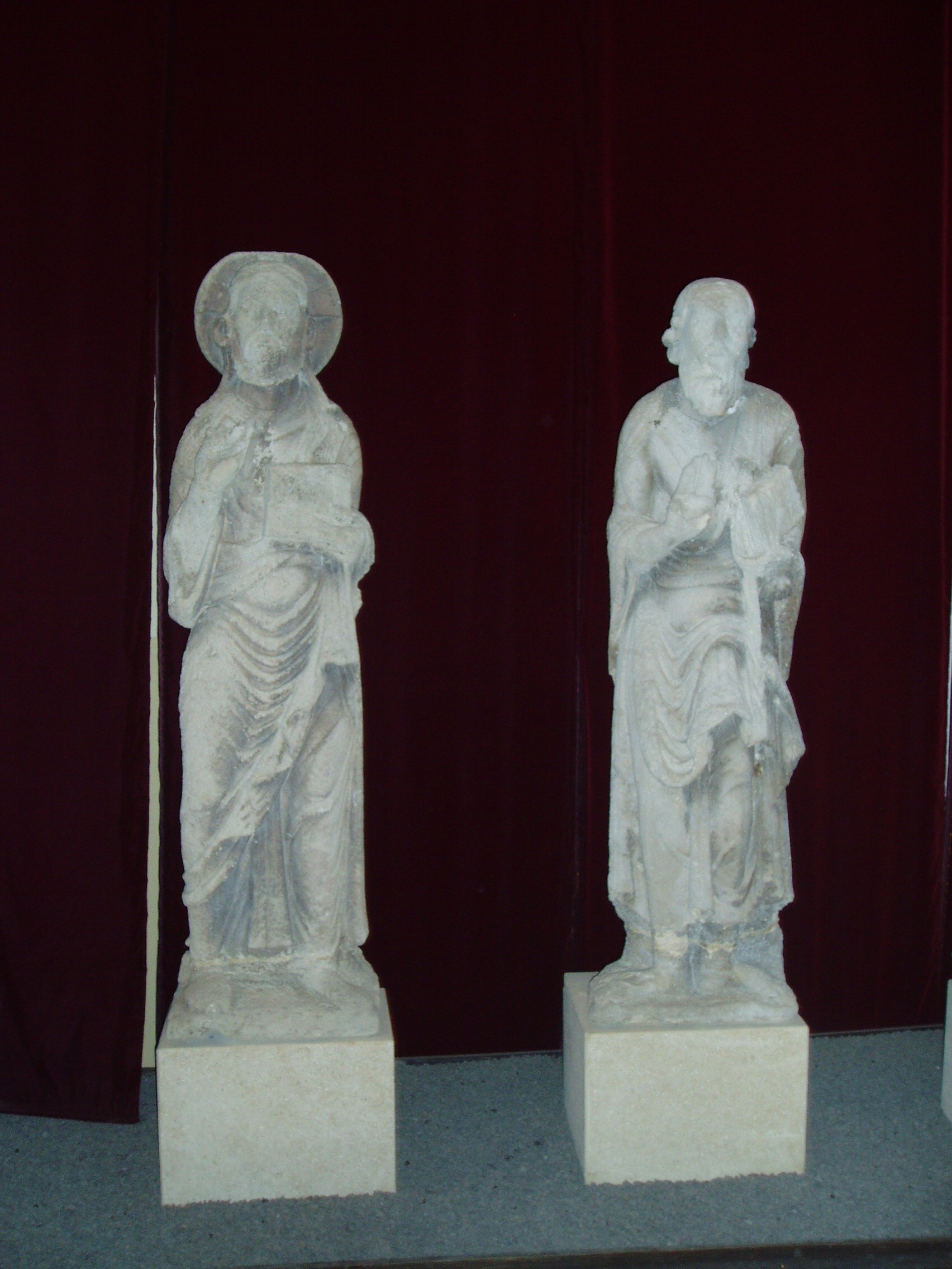 Nyilvános 1193 | 1906 | Szombathely, Kisfaludy utca 9. Savaria Múzeum | Az érdeklődő a Savaria Múzeum nagytermében tekintheti meg a jáki templom (lásd: Ják, Templom) eredeti homlokzati szobrait, amelyek Krisztust és a tizenkét apostolt ábrázolják. Az életnagyságú szobrok a magyarországi későromán szobrászat kiemelkedő alkotásai. Eredetileg a templom kapuépítményének homlokzatát díszítették, lépcsőzetesen elhelyezve, oszlopokkal elválasztott, karéjos záródású fülkékben állva. Jákon jelenleg pontos másolataik láthatók. Kicserélésük oka a nagyértékű szobroknak az időjárás viszontagságaitól való megvédése volt. A jáki apátsági templom, az egykori jáki bencés apátság monumentális bazilikája a magyarországi román stílusú építészet kiemelkedő, szinte szimbolikus alkotása. A hazai középkori nemzetségi monostorok egyedülálló épségben fennmaradt képviselője, mely művészi gazdagságával, a táj képébe illeszkedő mesteri elhelyezésével hívja fel magára a figyelmet. A fénykép 2006 májusában készült. |