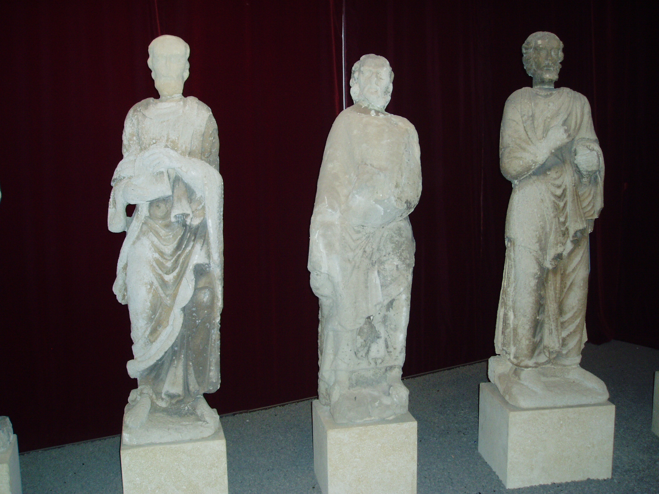 Nyilvános 1152 | 1834 | Szombathely, Kisfaludy utca 9. Savaria Múzeum | Az érdeklődő a Savaria Múzeum nagytermében tekintheti meg a jáki templom (lásd: Ják, Templom) eredeti homlokzati szobrait, amelyek Krisztust és a tizenkét apostolt ábrázolják. Az életnagyságú szobrok a magyarországi későromán szobrászat kiemelkedő alkotásai. Eredetileg a templom kapuépítményének homlokzatát díszítették, lépcsőzetesen elhelyezve, oszlopokkal elválasztott, karéjos záródású fülkékben állva. Jákon jelenleg pontos másolataik láthatók. Kicserélésük oka a nagyértékű szobroknak az időjárás viszontagságaitól való megvédése volt. A jáki apátsági templom, az egykori jáki bencés apátság monumentális bazilikája a magyarországi román stílusú építészet kiemelkedő, szinte szimbolikus alkotása. A hazai középkori nemzetségi monostorok egyedülálló épségben fennmaradt képviselője, mely művészi gazdagságával, a táj képébe illeszkedő mesteri elhelyezésével hívja fel magára a figyelmet. A fénykép 2006 májusában készült. |