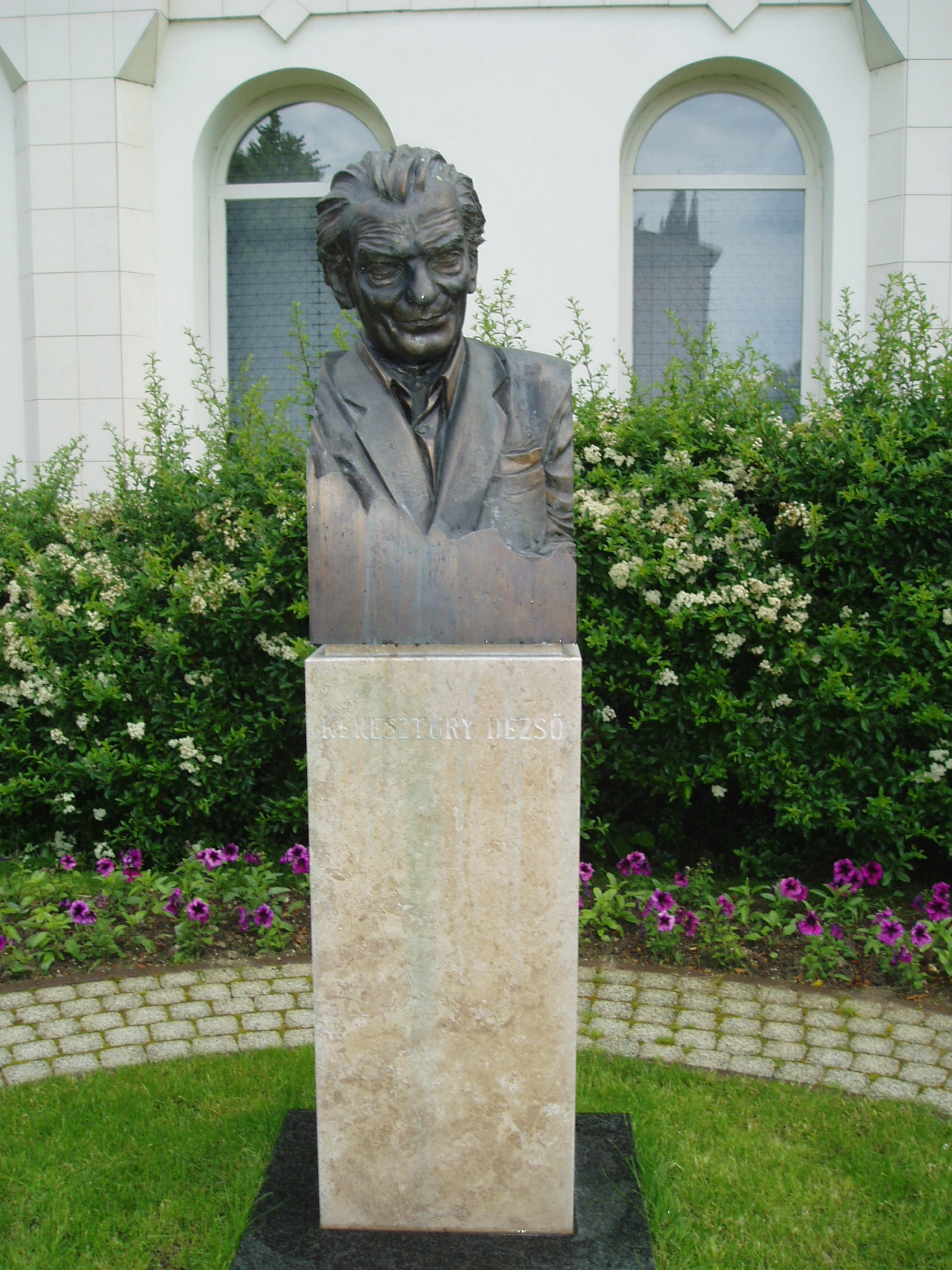 Nyilvános 1366 | 2805 | Zalaegerszeg, Keresztury Dezső tér: Keresztury Dezső mellszobra | 2004-ben, születésének centenáriumán Zalaegerszeg nagy szülötte, Keresztury Dezső író, költő, műfordító, irodalomtörténész, miniszter, akadémikus nevét vette fel az addig Centrumnak nevezett tér. Ekkor leplezték le mellszobrát is, Szórádi Zsigmond alkotását. Keresztury Dezső a közelben lévő Mártírok útja 2. számú épületben született (részletesebben lásd ott). A felvétel 2006 júniusában készült. Felh. irod.: Szelleme ma is velünk van. Ünnepség Keresztury Dezső 100. születésnapján. = www.zalamedia.hu |
